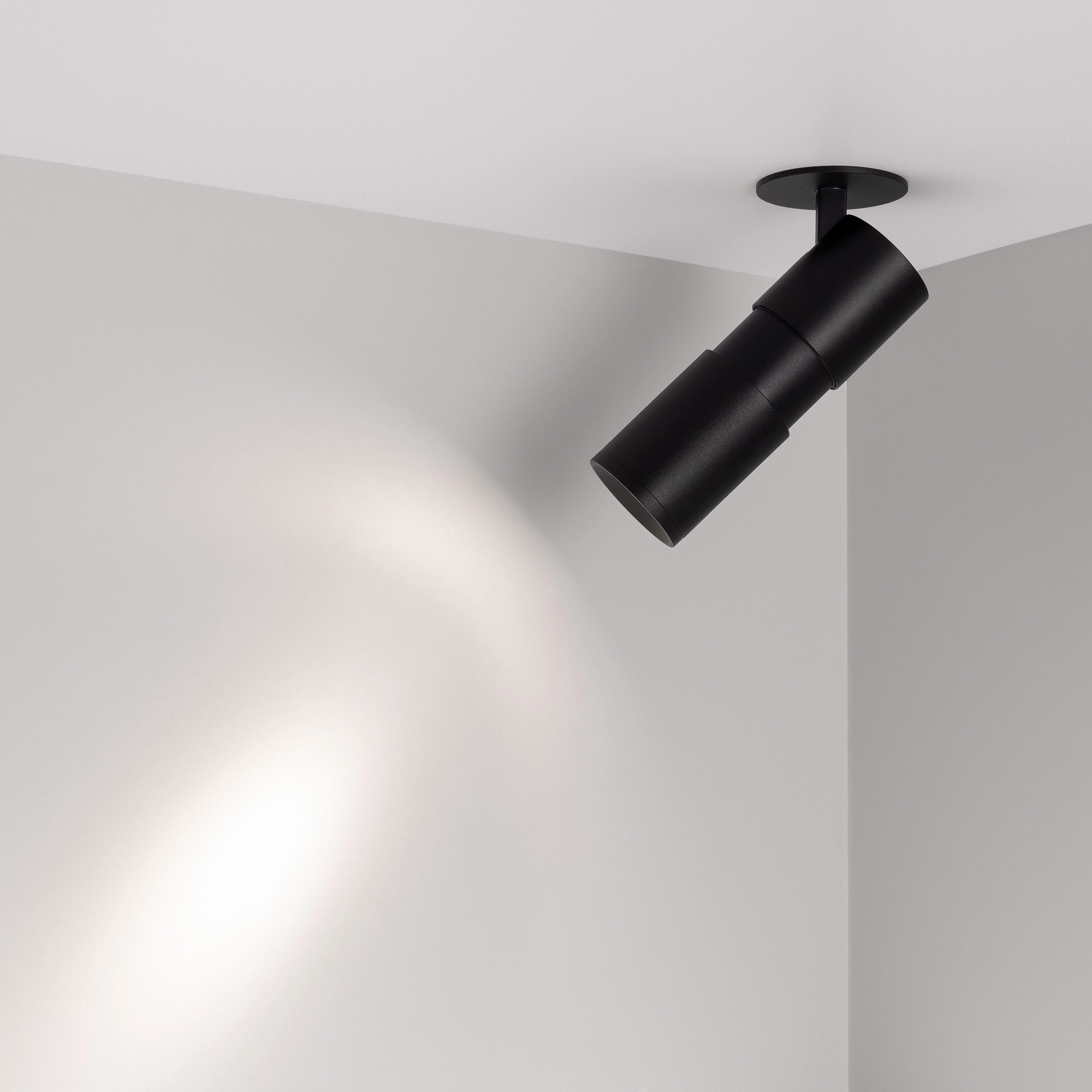 Встраиваемый поворотный откидной светильник для потолка, 12Вт. Цвет свечения дневной 4000K, световой поток 720 лм, 60 лм/Вт, регулируемый угол 8-80°, CRI>90. Корпус круглый, металл, цвет черный, IP20. Размеры DxHxL Ø55x132~163,5. Размер чаши Ø70x2 мм. Установка в отверстие Ø50 мм. Входное напряжение AC220-240V, мощность 12Вт. Драйвер встроенный (20-40V, 250 мА).