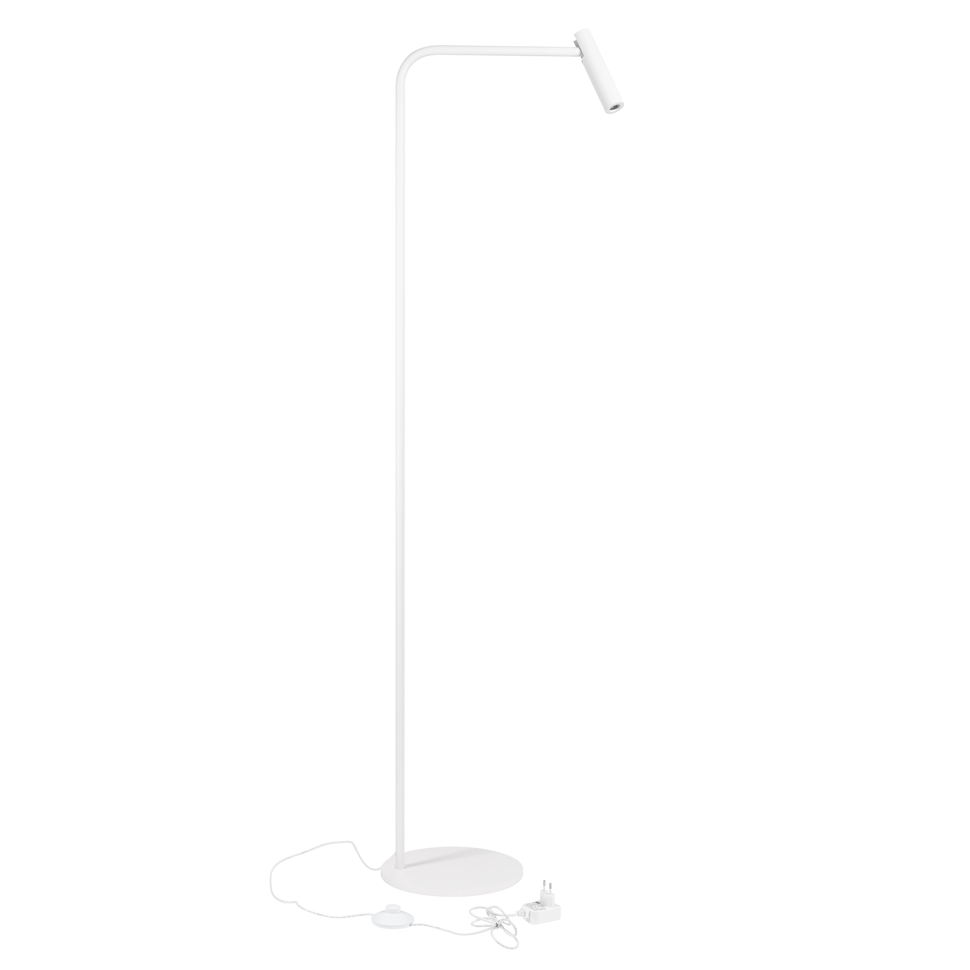 Декоративный напольный светильник. Мощность 3 Вт, св. поток 180 лм, 60 лм/Вт, теплый 3000К, CRI>90, угол 20°, напряжение питания 230 В. Белый корпус из алюминия (основание, ножка, светоизлучаль в форме шара), степень защиты IP20. Размер основания Ø250×12 мм, размер ножки Ø16×1440х250 мм, размер светоизлучателя Ø35×150 мм. Длина провода 193 мм, питание от сети 220-240V.