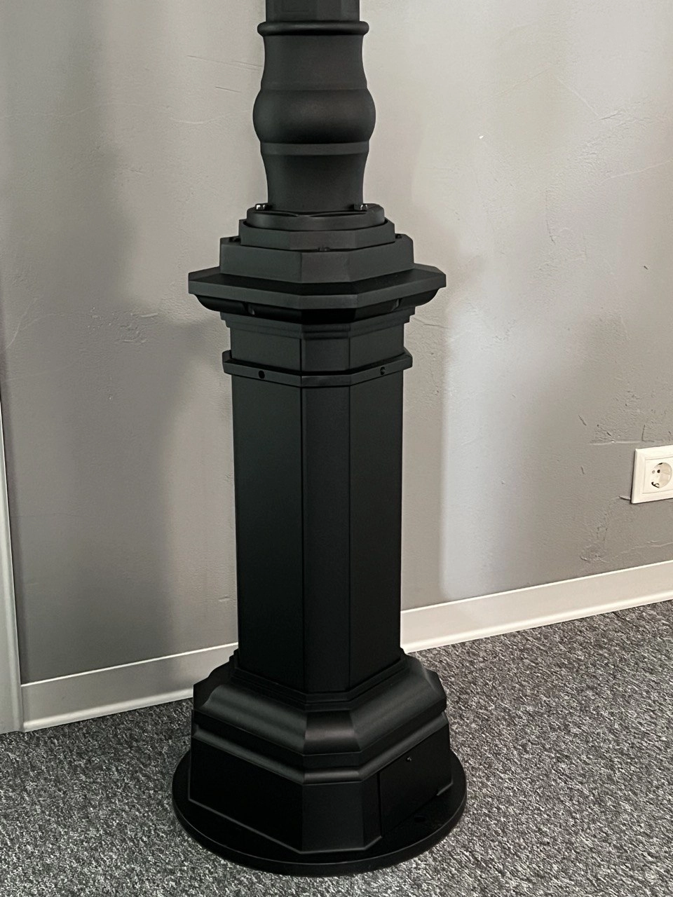 Светильник напольный садово-парковый. Материал: алюминиевый сплав , стекло. Напряжение 220-240V 50Hz. 2*E27. Мощность 2*100W. Размер:760*2900мм. IP44. В основании светильника сделан специальный лючок для более удобного подключения. Закладные элементы входят в комплект. Цвет: черный.