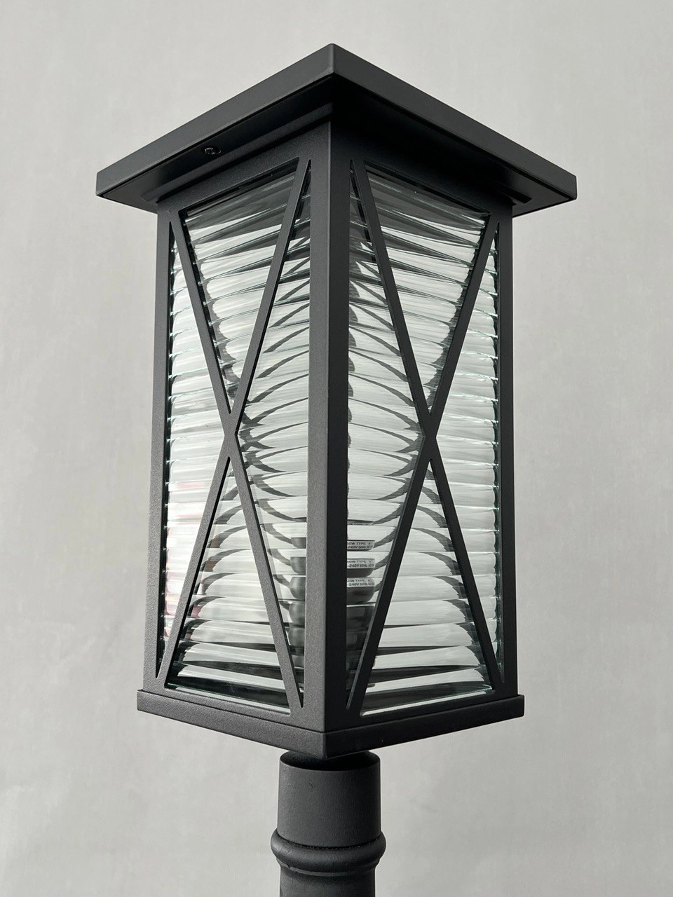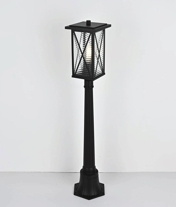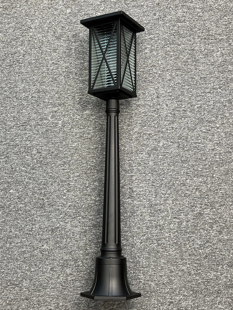 Светильник напольный  садово-парковый. Материал: алюминиевый сплав , стекло. Напряжение 220-240V 50Hz. 1*E27. Мощность 60W. Размер M:  190*190*1110мм . IP44. Цвет: Black,