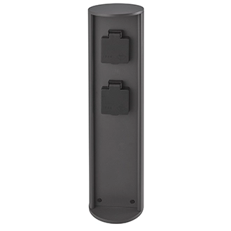 Уличная розетка . Материал : алюминиевый сплав. Напряжение: АС 220-240V~50Hz.  В корпусе установлены 2 влагозащищенные розетки, которые предназначены для подключения приборов максимальной мощностью 2*2000W. Общие габаритные размеры: 100*400мм; Степень защиты: IP44; Рабочая температура: -25 до + 40°С. Цвет: матовый черный.