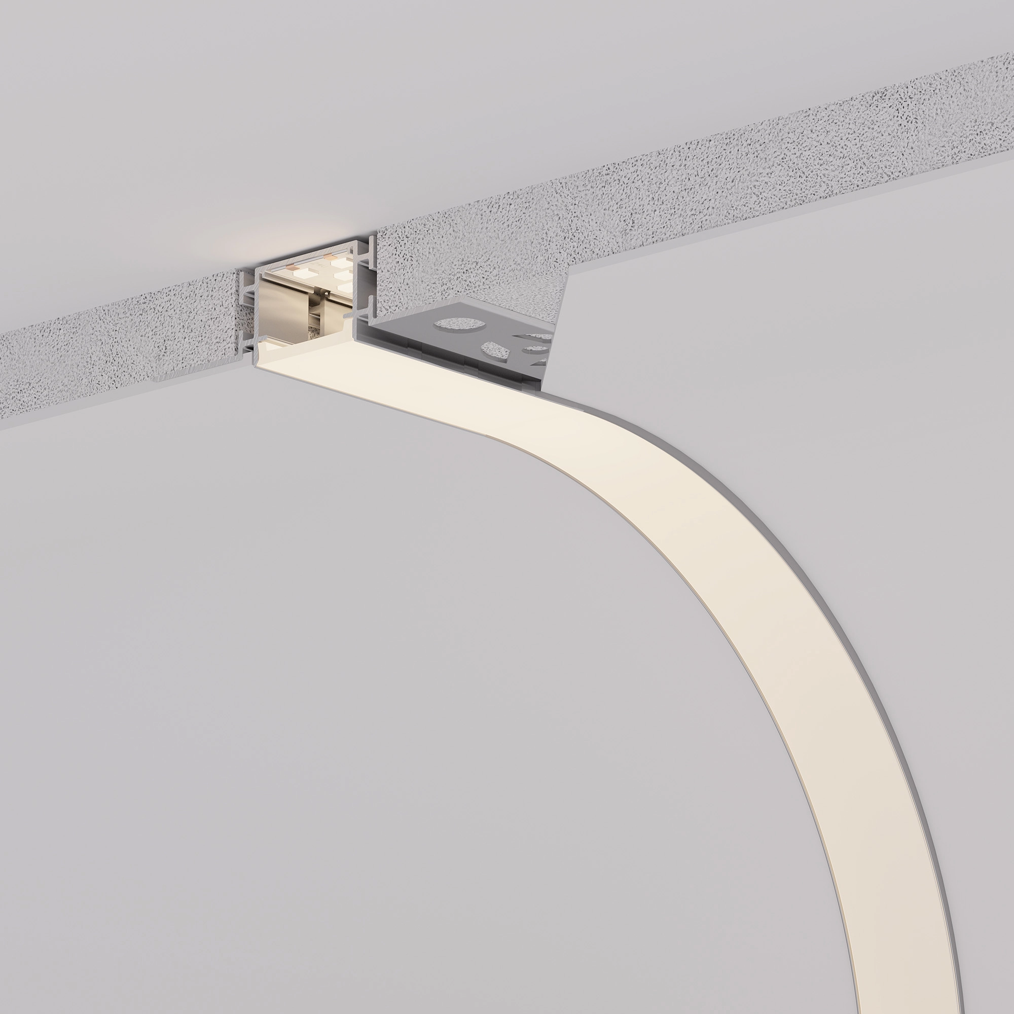 Алюминиевый встраиваемый гибкий профиль для светодиодных лент и линеек. Изгиб вверх/вниз. Минимальный радиус изгиба 30 см. Габаритные размеры (L×W×H): 2000х70х17,1 мм. Ширина площадки для ленты 17 мм. Экраны, заглушки и другие аксессуары приобретаются отдельно. Цена за 1 метр.
