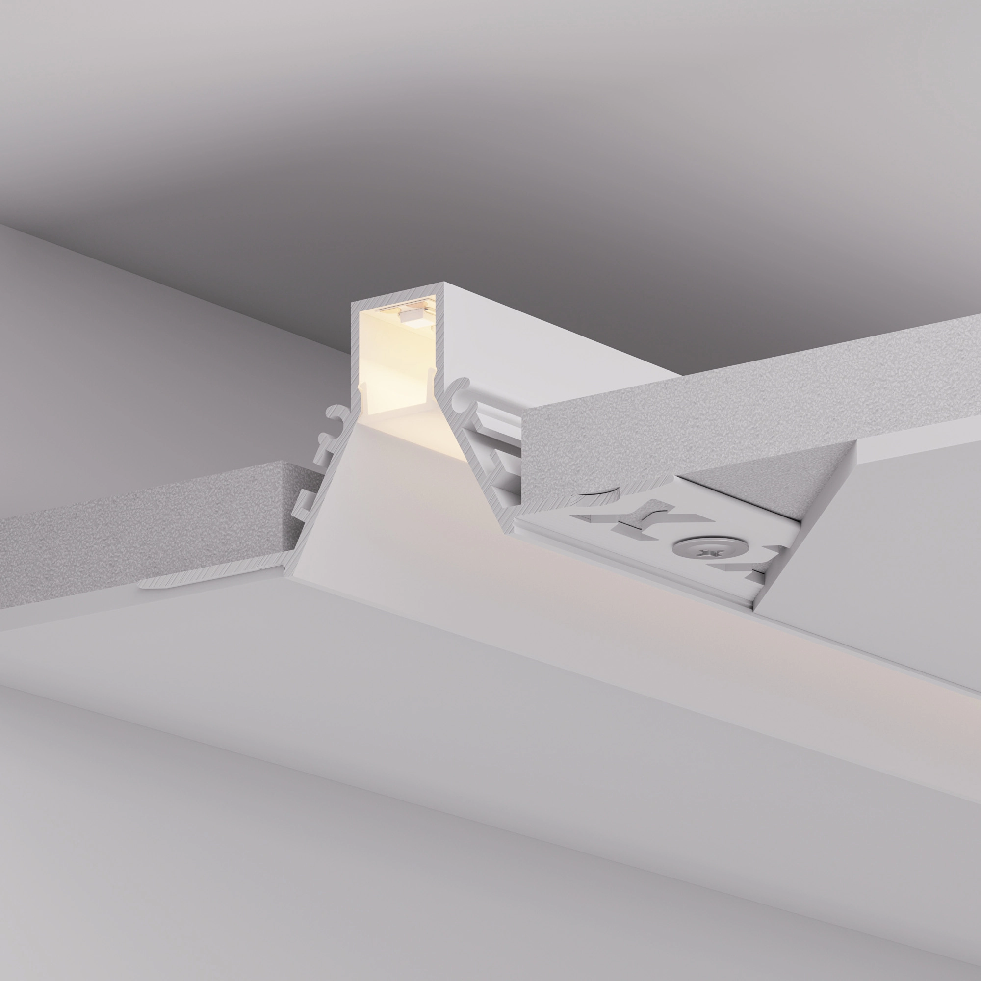 Алюминиевый профиль для светодиодных лент и линеек. Скрытая установка (под строительную отделку). Цвет - белый RAL9016 (порошковая окраска). Экран утоплен в плоскости профиля, что позволяет скрыть источник света от прямого контакта с глазами. Габаритные размеры (L×W×H): 2000x72x28 мм. Ширина площадки для ленты 10,1 мм. Экраны, заглушки и другие аксессуары приобретаются отдельно. Цена за 1 метр.