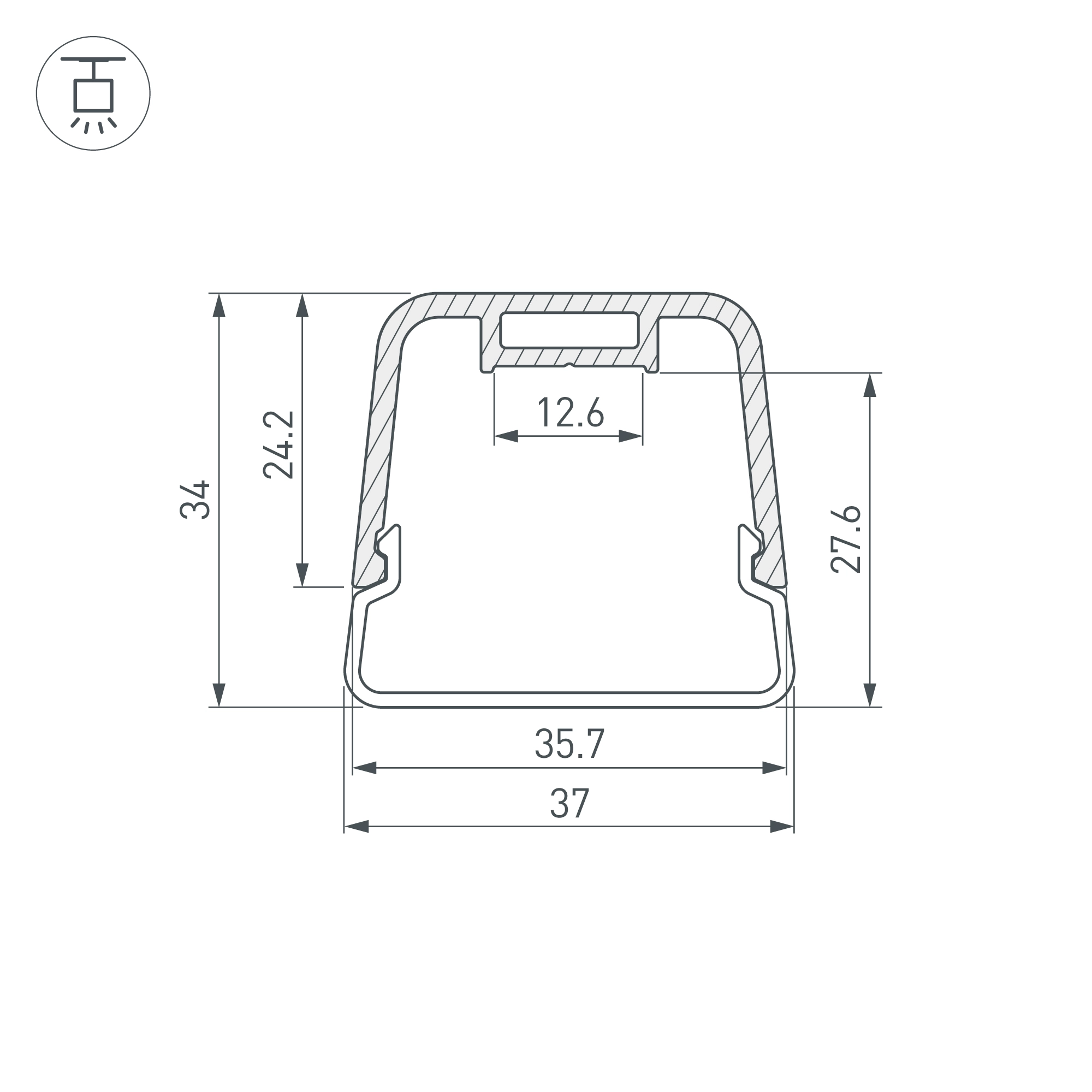 Комплект с экраном. Алюминиевый анодированный профиль серо-оливкового цвета для светодиодных лент и линеек. Габаритные размеры (L×W×H): 2000x37x34 мм. Ширина площадки для ленты 12.6 мм. В комплект включены экран и заглушки. Остальные аксессуары приобретаются дополнительно. Цена за комплект.