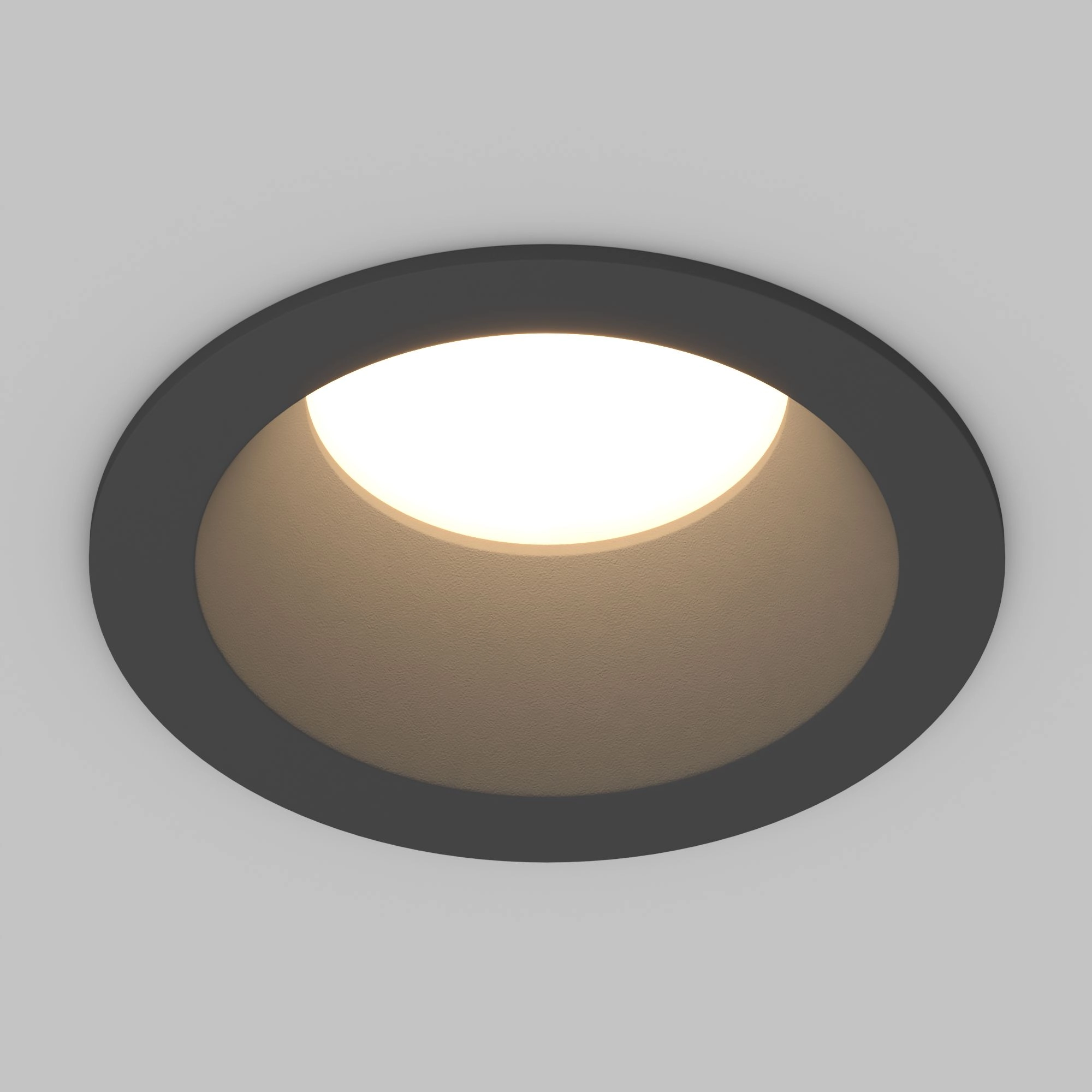 Встраиваемый светильник даунлайт. Мощность 8 Вт, св. поток 610 лм, 76 лм/Вт, тёплый 2700 K, CRI>90, угол 85°, напряжение питания 230 В. Чёрный круглый корпус из алюминия, степень защиты IP54. Размер: диаметр 84 мм, высота 49 мм. Монтаж встраиваемый, установочное отверстие: диаметр 75 мм. Драйвер 30-45 В, 200 мА, пульсация <3%.