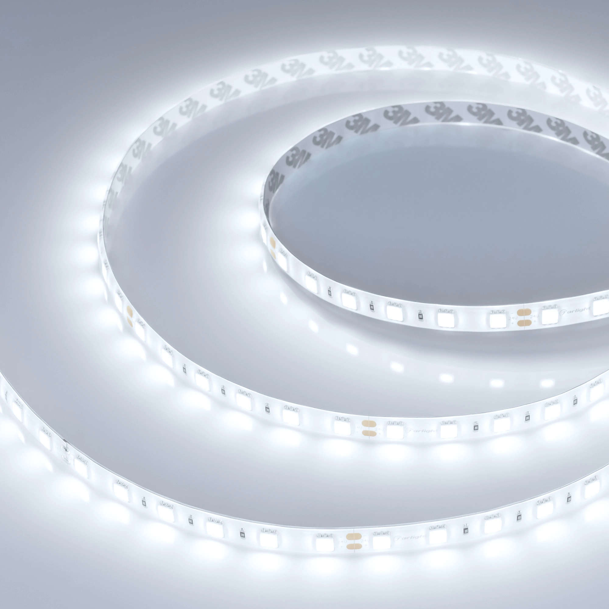 Светодиодная герметичная лента RTW серии B60, IP65 (SE - силиконовый верхний слой). Светодиоды 5060, 60 шт/м, белая плата шириной 10 мм, скотч 3M. Цвет БЕЛЫЙ 6000K, индекс цветопередачи CRI>85, угол 120°. Питание 24 В, мощность 14.4 Вт/м (72 Вт на 5 м). Размеры 5000x10x2.7 мм. Мин. отрезок 100 мм, 6 светодиодов. Цена за 1 м.