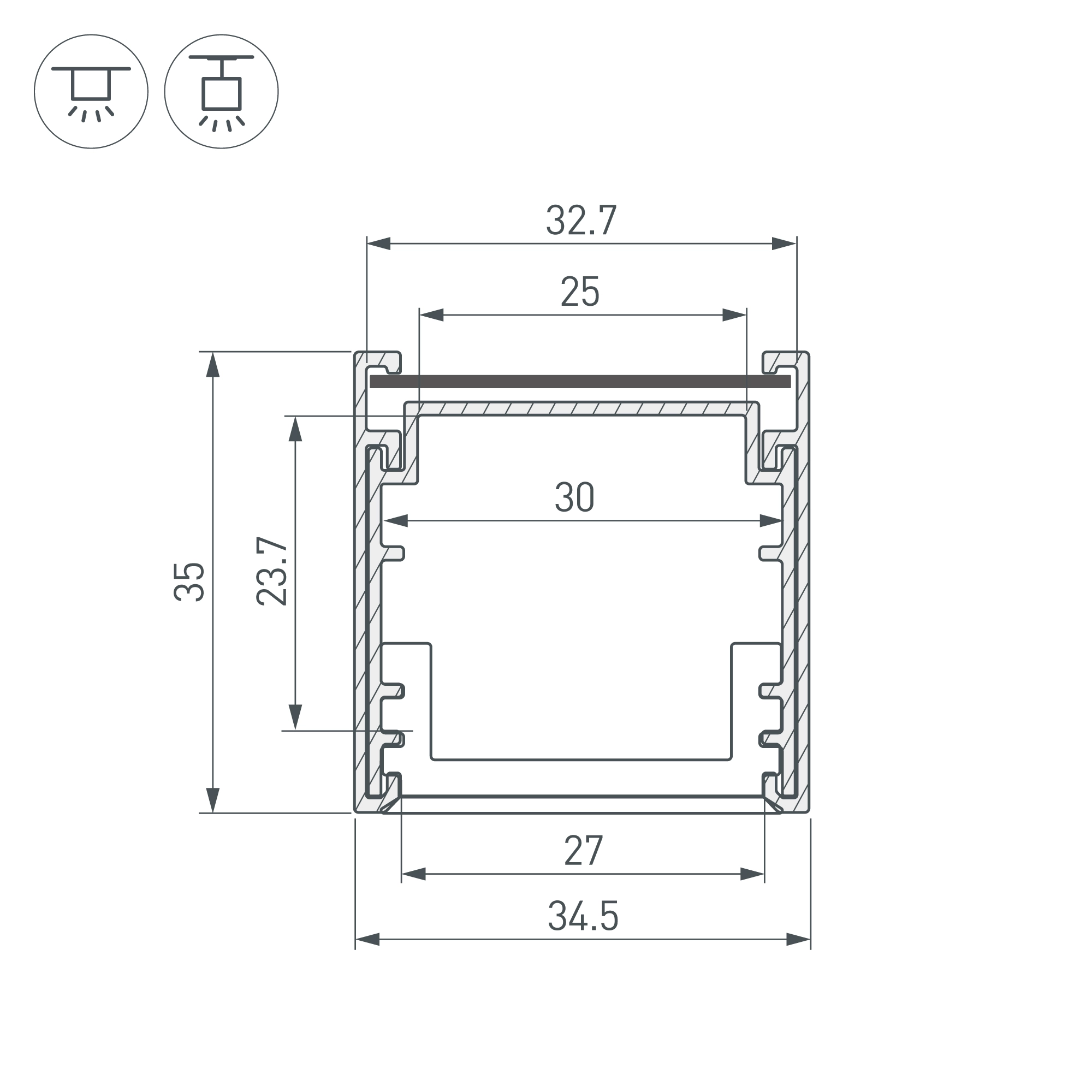 Трехкомпонентный алюминиевый анодированный гибкий профиль для светодиодных лент: внутренний профиль и две внешние стенки.  Габаритные размеры (L×W×H): 2000x34,5x35 мм. Ширина площадки для ленты 25 мм. Укомплектован черной эластичной лентой для защиты ленты от пыли и фильтрации светового потока. Экраны, заглушки и другие аксессуары приобретаются отдельно. Цена за 1 метр.