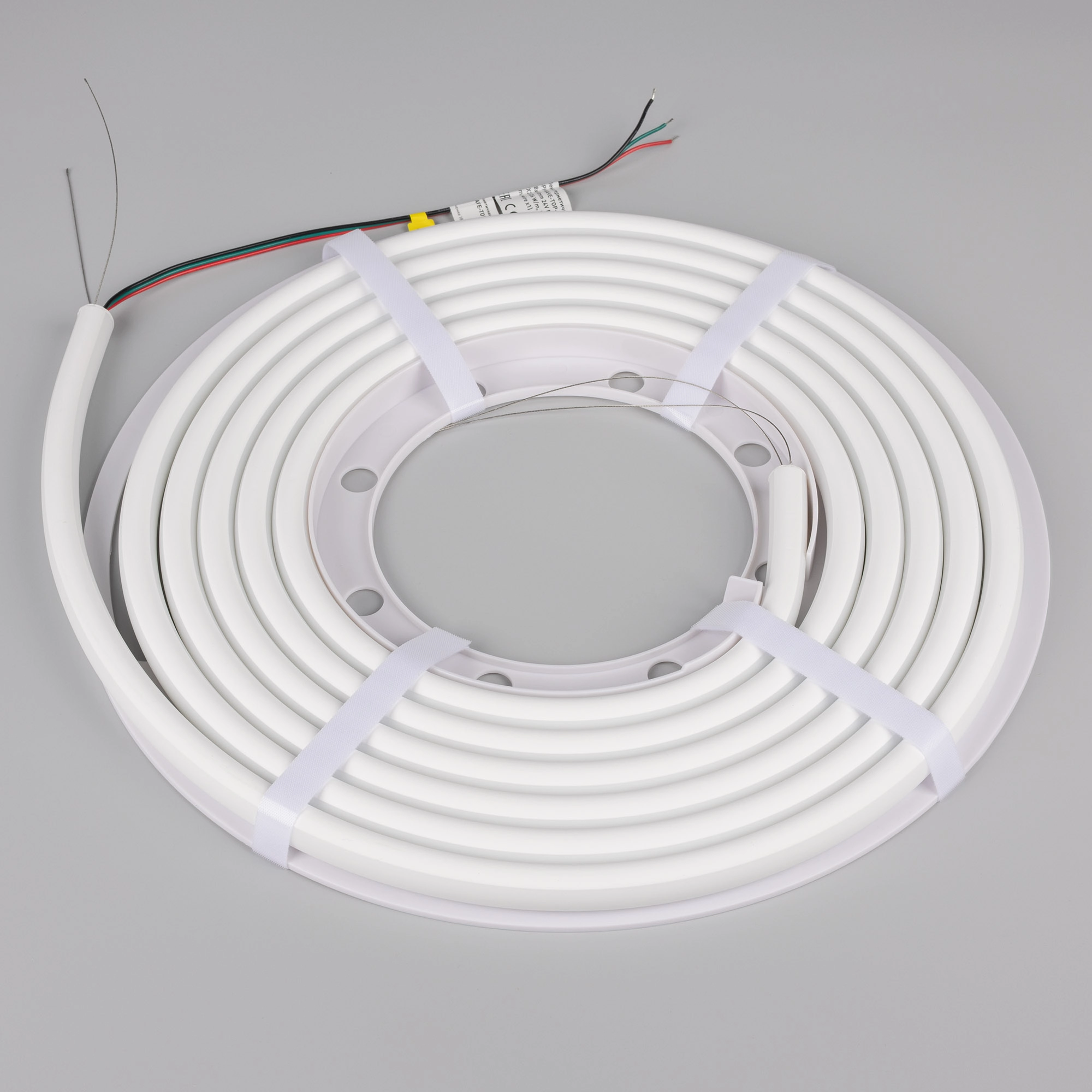 Гибкая герметичная лента (неон серии WAVE), сечение 18×15 мм с тросом-натяжителем. Светодиоды SMD3838 200 шт/м. Цвет свечения RGB, входной сигнал SPI (микросхема UCS1903, ??? пикселей/метр), 3 канала управления, угол излучения 360°. Мощность 10 Вт/м, питание 24 В. Класс пылевлагозащиты IP54. Размеры 5000×18×15 мм. Мин. отрезок 10 мм. Изгиб согласно метки на корпусе, минимальный радиус изгиба 150 мм. Кабель питания длиной 500 мм, вывод с одной стороны вдоль линии сечения неона. Катушка 5 м. Цена за 1 м. Гарантия 3 года.