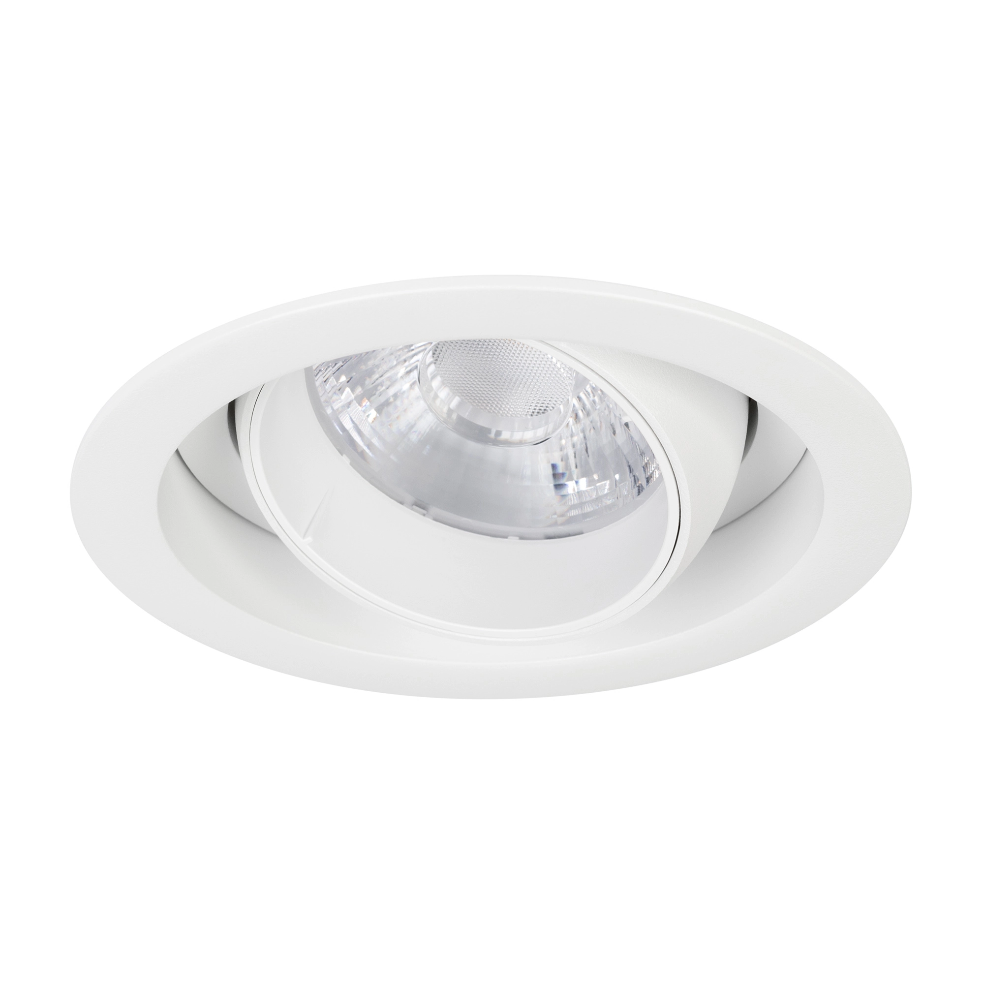 Встраиваемый карданный светильник. Мощность 30 Вт, св. поток 3104 лм, 102лм/Вт, дневной 4000 K, CRI>92,  угол 17°, напряжение питания 230 В. Белый корпус из алюминия, белая вставка, степень защиты IP20. Размер: диаметр 135 мм, высота 125 мм. Монтаж встраиваемый, установочное отверстие: диаметр 120 мм. Драйвер 24-42 В, 750 мА, пульсация <2%.