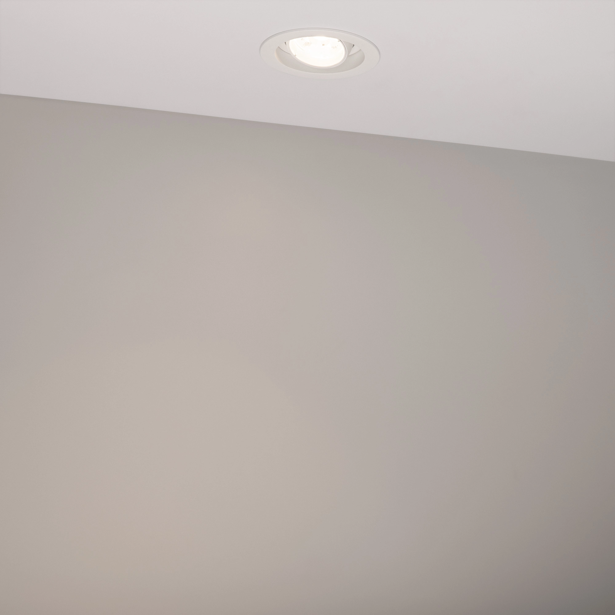 лм/Вт, дневной 4000 K, CRI>92, угол 20°, напряжение питания 230 В. Белый корпус из алюминия, белая вставка, степень защиты IP20. Размер: диаметр 90 мм, высота 80 мм. Монтаж встраиваемый, установочное отверстие: диаметр 75 мм. Драйвер 27-40 В, 300 мА, пульсация <2%.