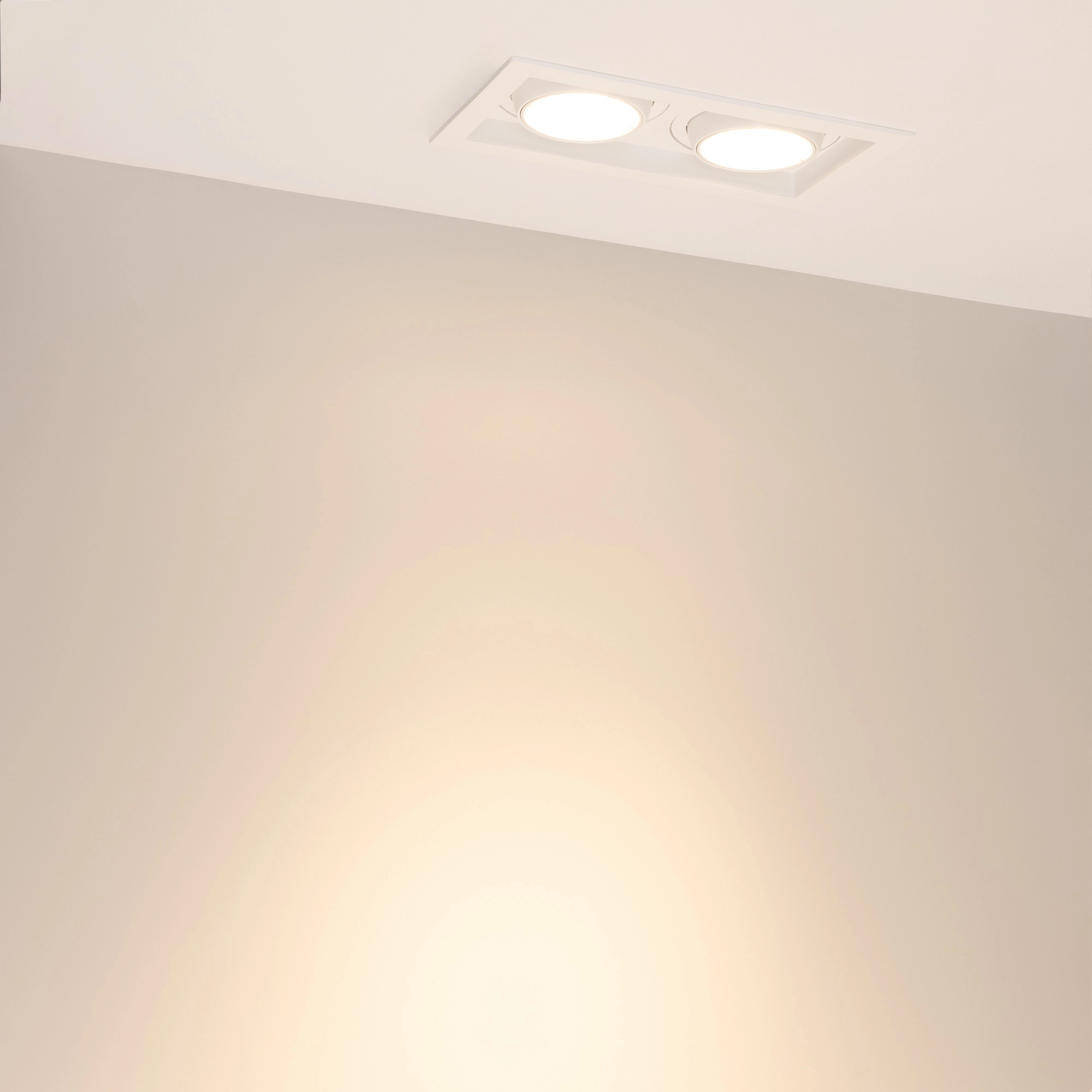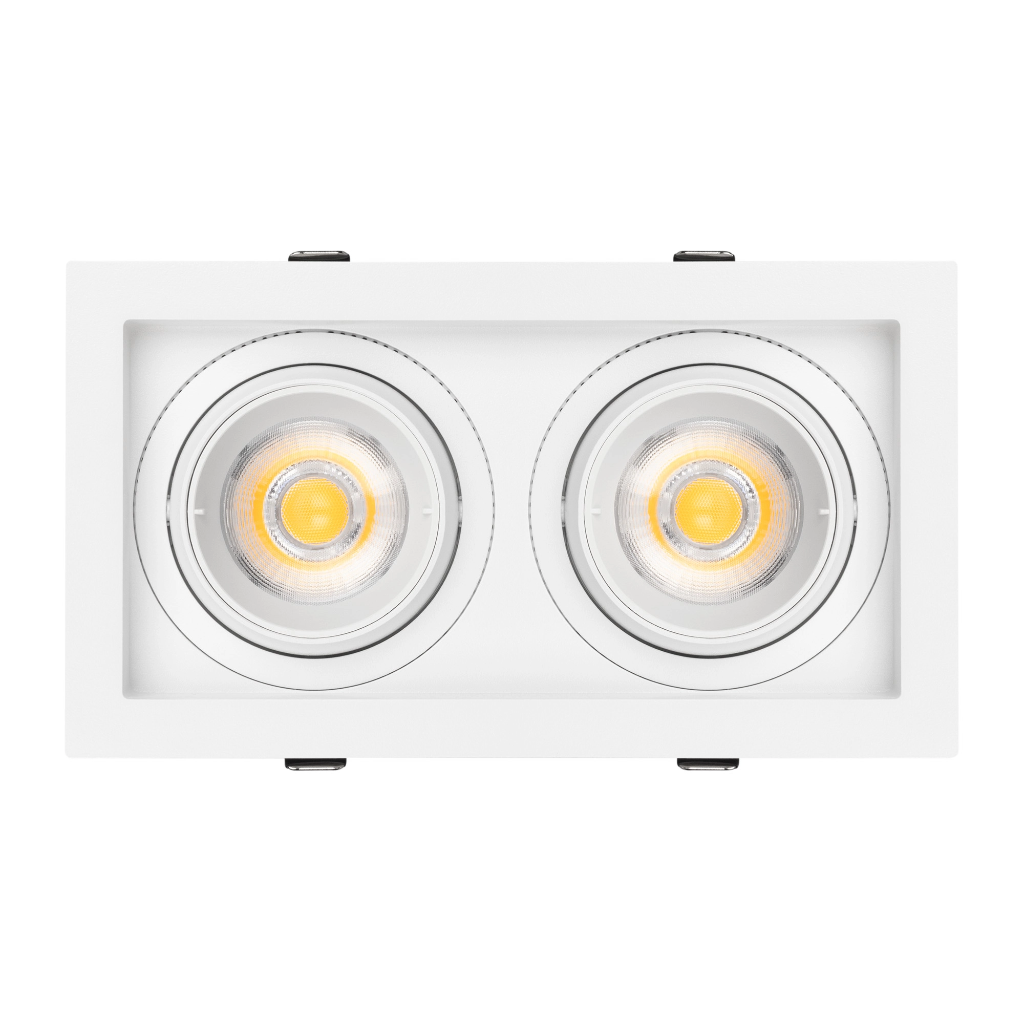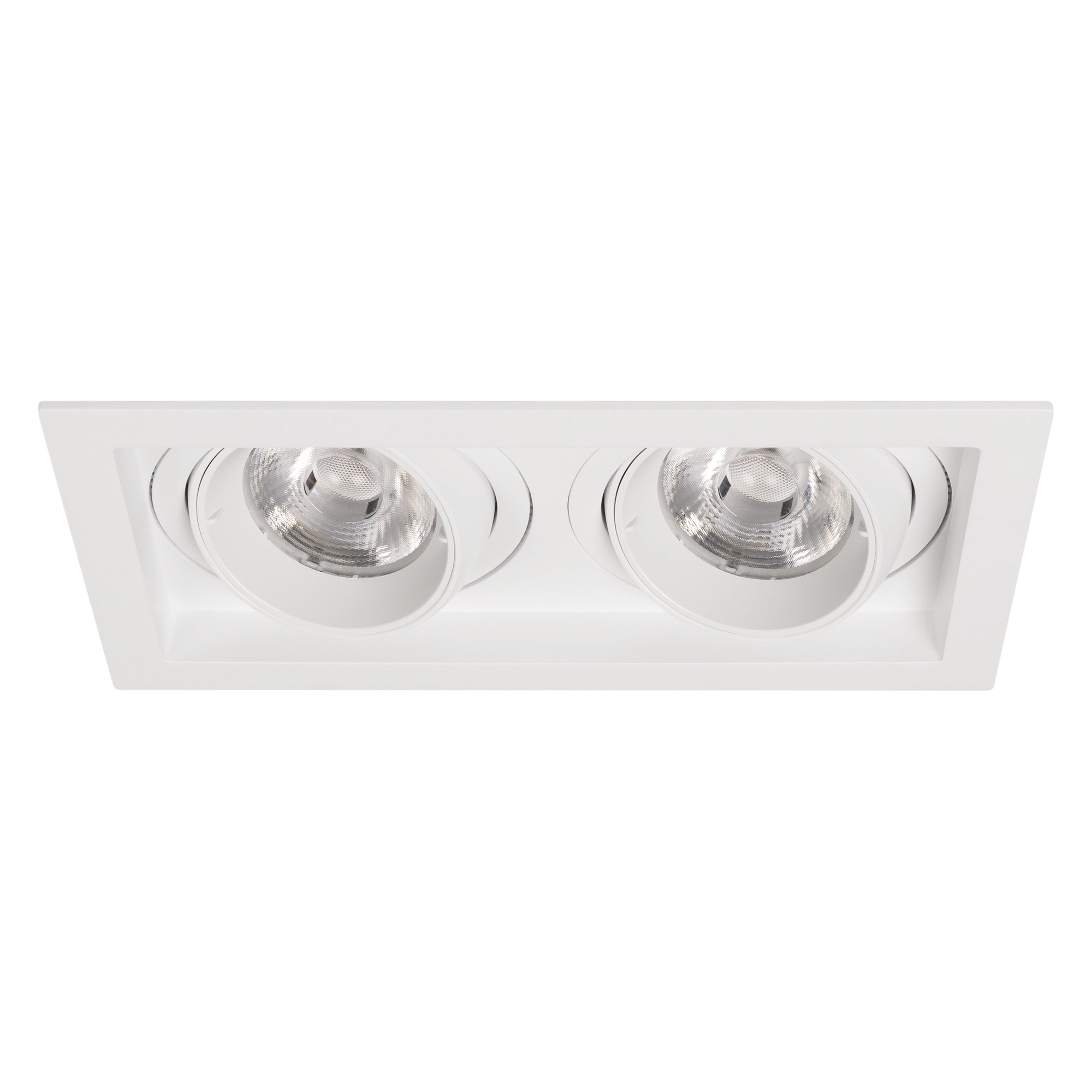 Встраиваемый карданный светильник. Мощность 2х20 Вт, св. поток 4264 лм, 106 лм/Вт, дневной 3000 K, CRI>92, угол 40°, напряжение питания 230 В. Белый корпус из алюминия, черная вставка, степень защиты IP20. Размер: длина 210 мм, ширина 117 мм, высота 105 мм. Монтаж встраиваемый, установочное отверстие: длина 190 мм, ширина 95 мм. Драйвер 24-42 В, 500 мА, пульсация <2%.