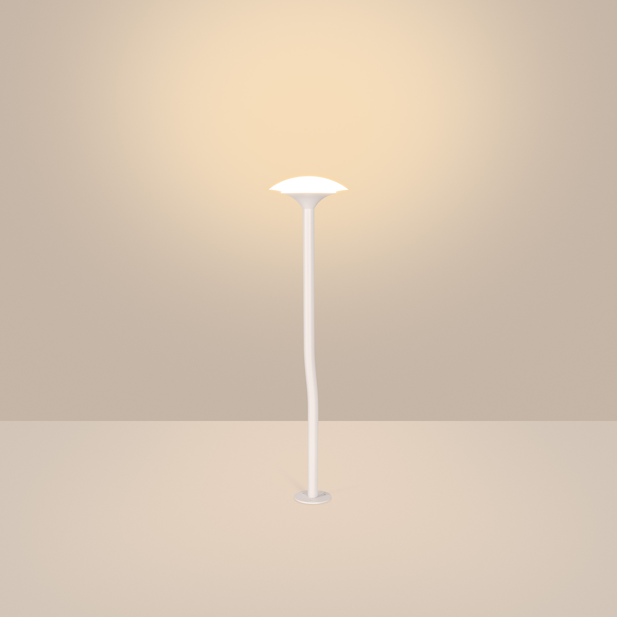 Уличный декоративный светодиодный светильник. Мощность 2 Вт, св. поток 252 лм, 122 лм/Вт, теплый 3000 K, CRI>80, угол излучения 100°, напряжение питания 24 В. Белый корпус из алюминия, прозрачный матовый рассеиватель из PMMA. Степень защиты IP65. Размер: диаметр 98 мм, высота 450 мм, высота углубления 155 мм. Монтаж в грунт с помощью основания пика (входит в комплект поставки).