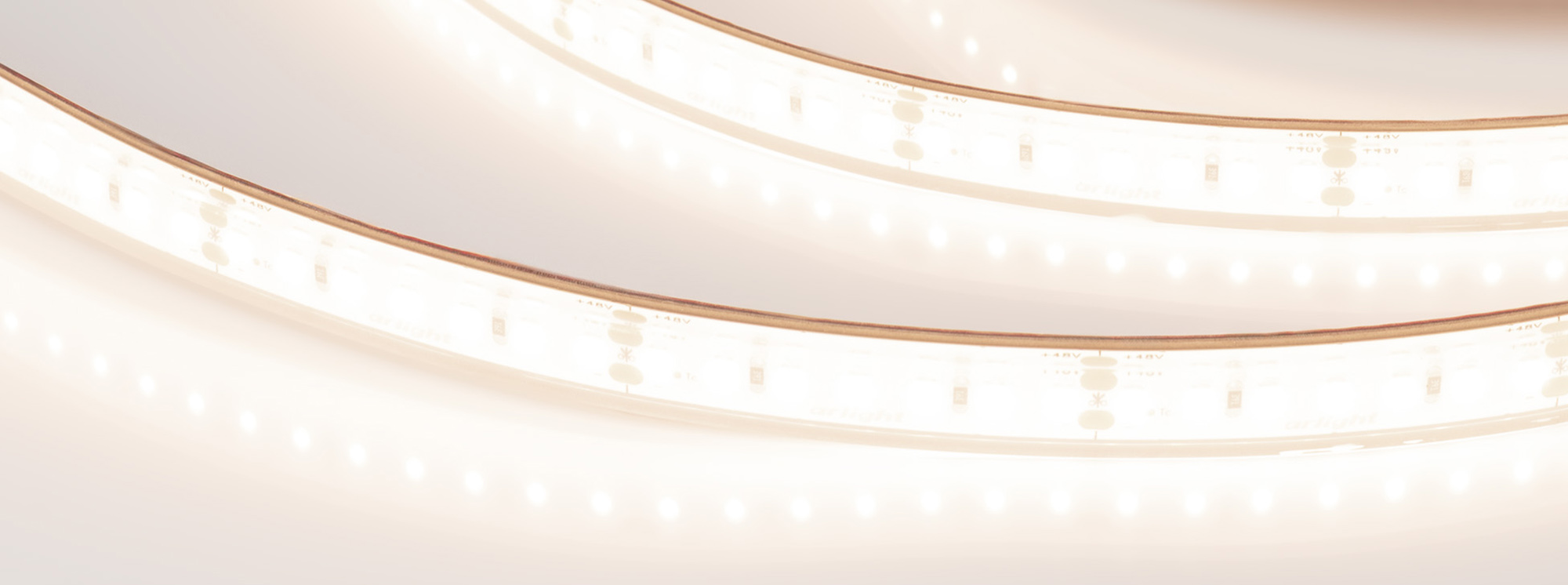 Мощность – один из критериев оценки яркости светодиодной ленты. Традиционно считают, что от мощности ленты напрямую зависит количество света. Ленты Arlight белого цвета выдают от 50 до 155 лм на 1 Вт мощности. Условно считается, что 7 Вт ленты заменяют 1
