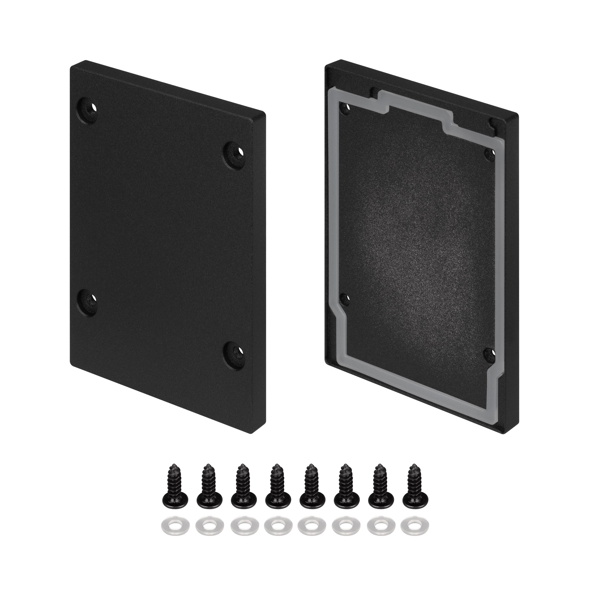 Пара алюминиевых заглушек с силиконовым слоем внутри для герметизации профиля IP-LINE-5475. Цвет - черный. В комплекте 2 заглушки без отверстия.