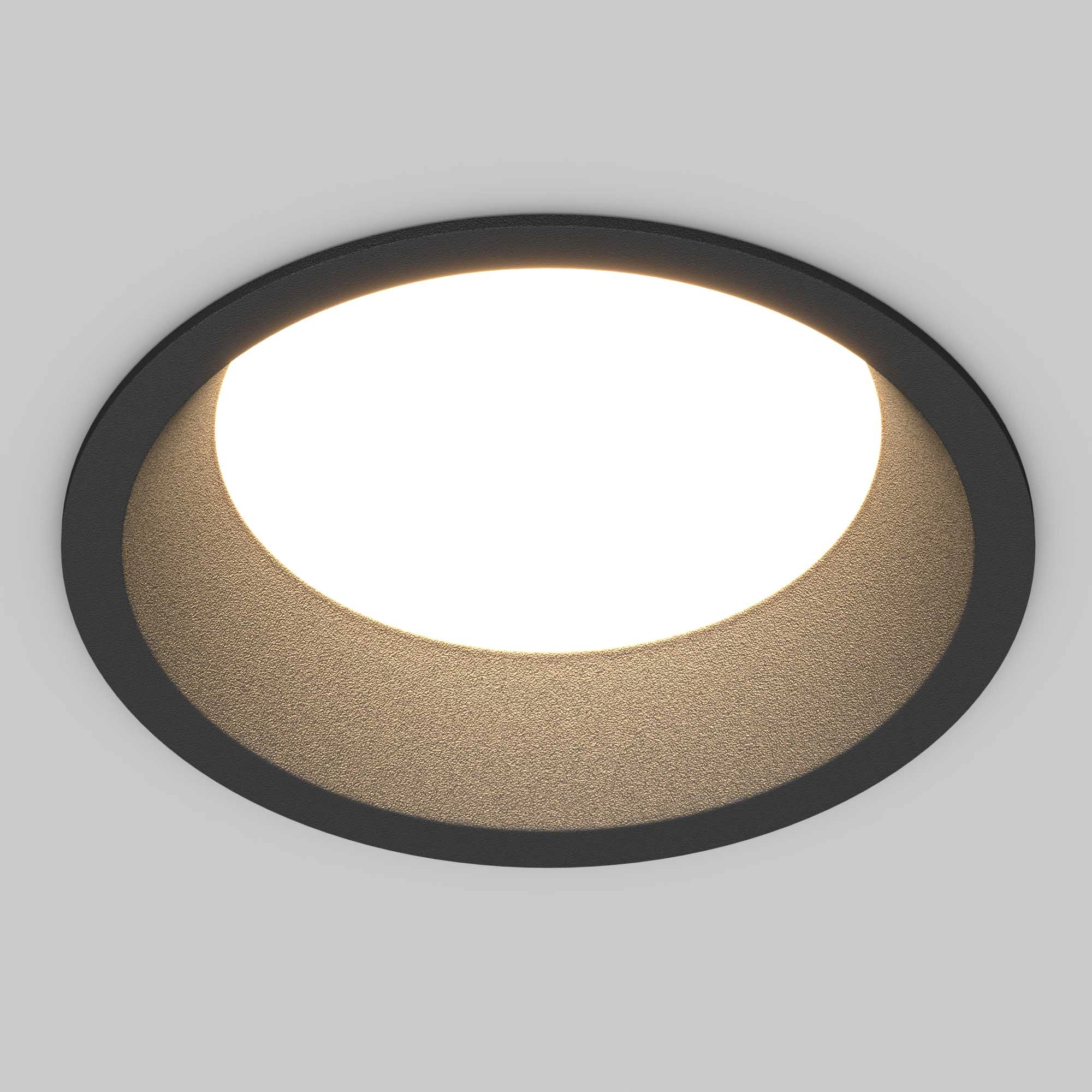Встраиваемый светильник даунлайт. Мощность 12 Вт, св. поток 670 лм, 56 лм/Вт, тёплый 2700 K, CRI>90, угол 85°, напряжение питания 230 В. Чёрный круглый корпус из алюминия, степень защиты IP20. Размер: диаметр 104 мм, высота 55 мм. Монтаж встраиваемый, установочное отверстие: диаметр 95 мм. Драйвер 27-42 В, 300 мА, пульсация <2%.
