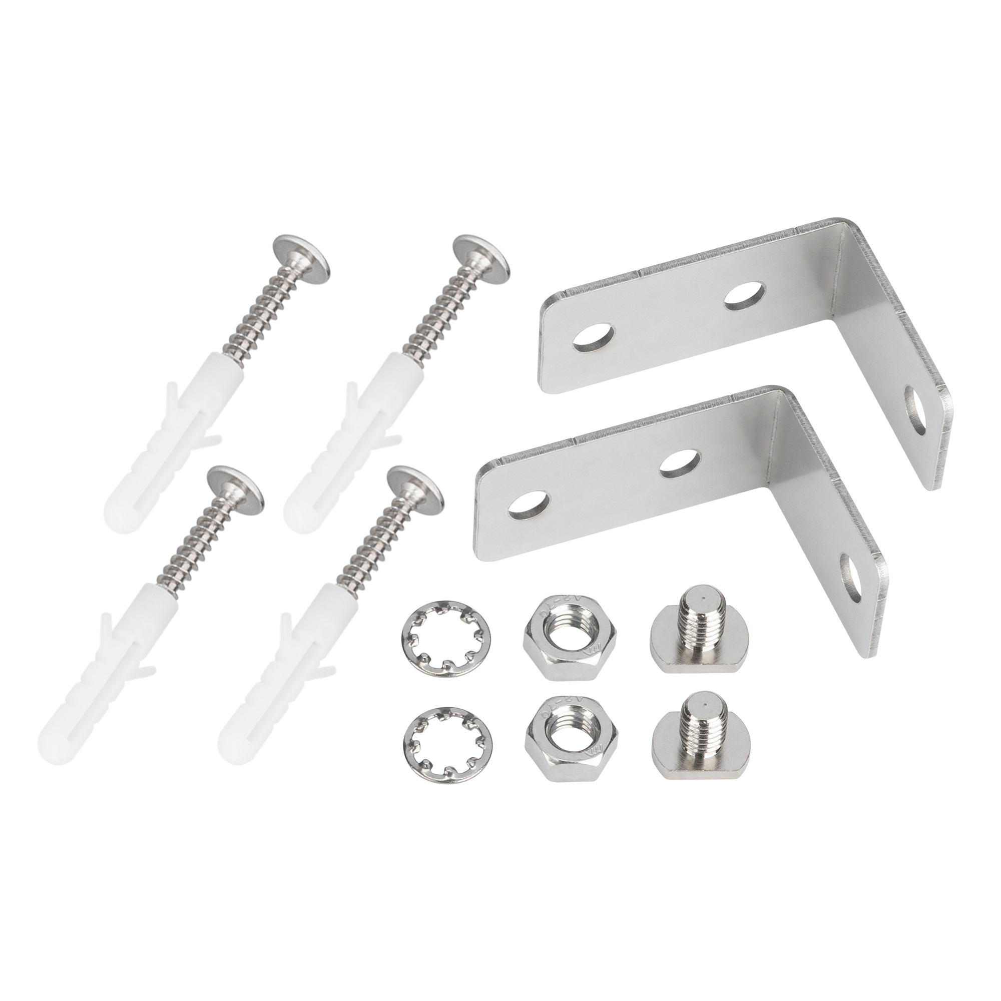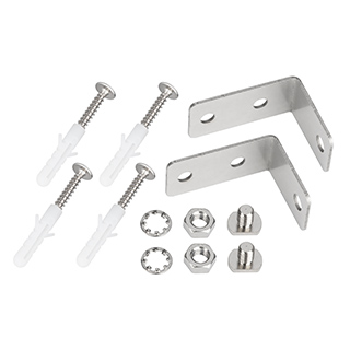 Комплект держателей профиля IP-LINE-4050 для накладного монтажа на стену. В комплекте: держатель - 2 шт., шуруп с дюбелем - 4 шт., гровер - 2 шт., гайка - 2 шт.,  винт с площадкой - 2 шт. Материал - сталь. Цена за комплект.