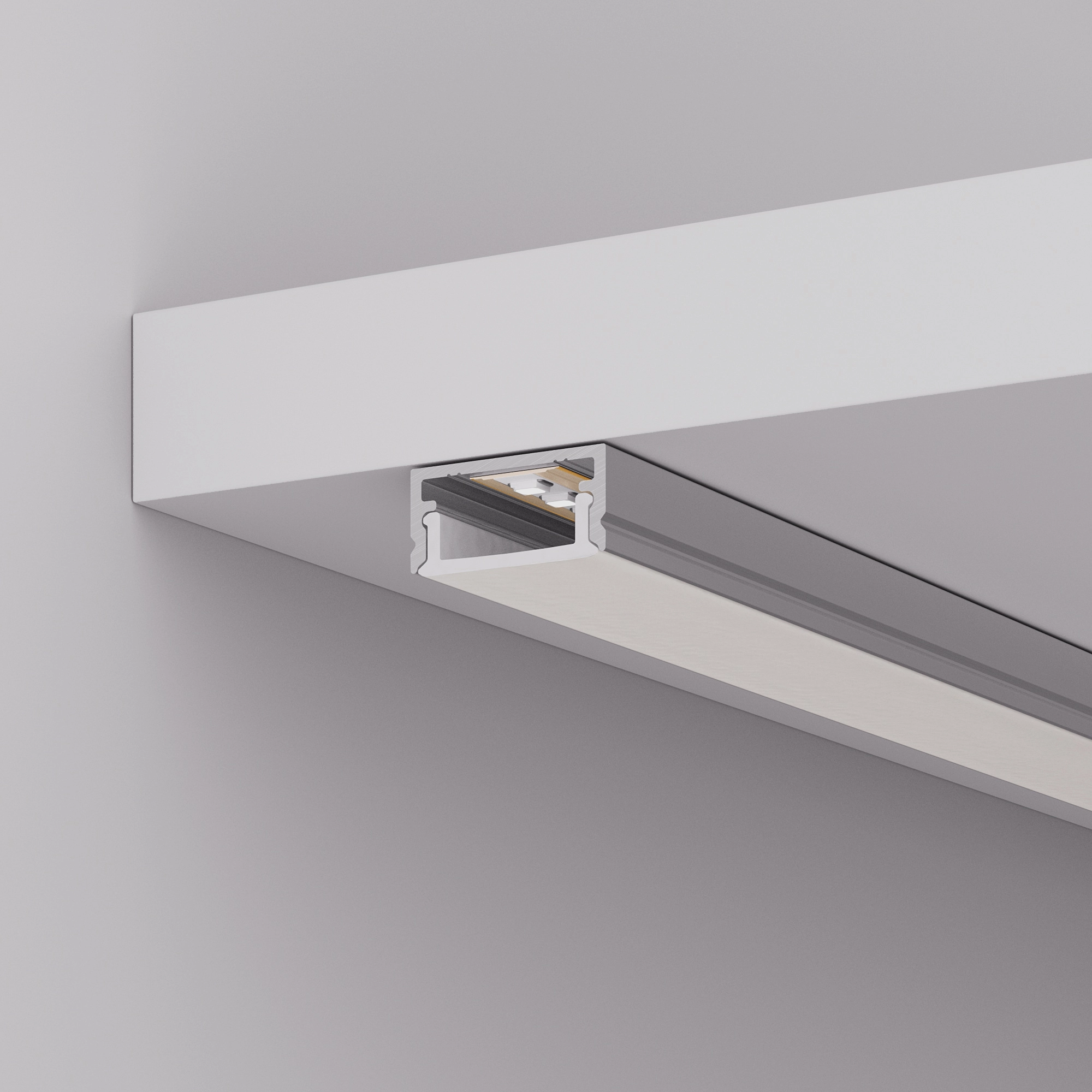 В комплект входят: алюминиевый анодированный профиль 2000 мм, матовый экран 2000 мм, пластиковые глухие заглушки - 2 шт., заглушки с выводом питания 5.5DC Female - 2 шт., металлические держатели - 4 шт., шурупы - 4шт., светодиодной ленты FC-M200.