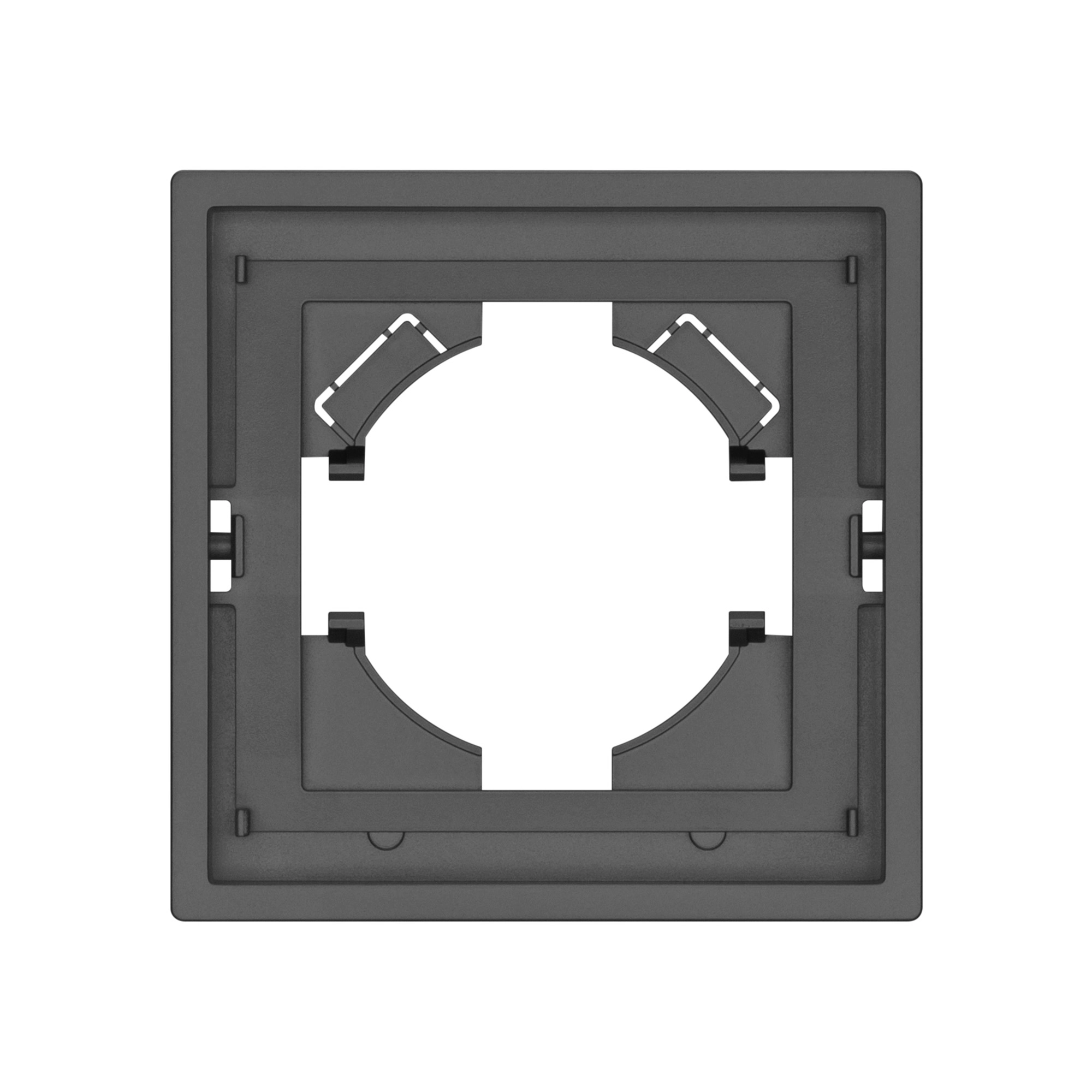 Рамка пластиковая на 1 пост, под встраиваемый механизм. Цвет - серый, с Soft-Touch покрытием.  Среднего уровня герметичности IP20. Ориентация монтажа горизонтальная.
