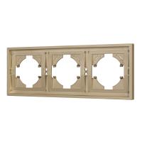 Рамка пластиковая на 3 поста, под встраиваемый механизм. Цвет - золотой, с Soft-Touch покрытием.  Среднего уровня герметичности IP20. Ориентация монтажа горизонтальная.