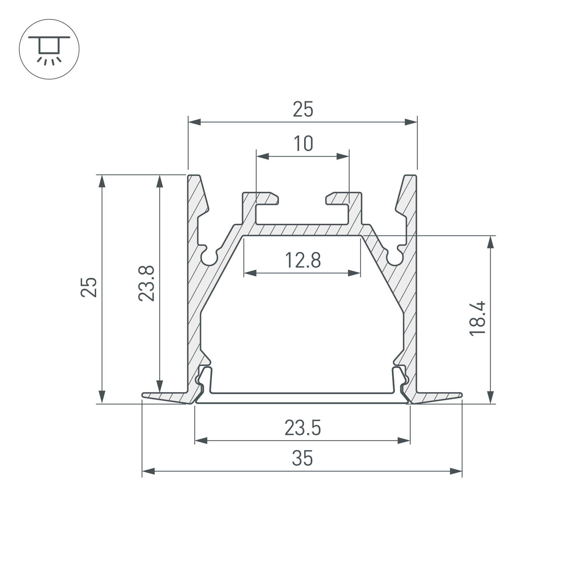 Алюминиевый анодированный профиль для светодиодных лент и линеек. Цвет - чёрный. Габаритные размеры (L×W×H): 2000x35x25 мм, паз для установки 25 мм. Ширина площадки для ленты 12 мм. Экраны, заглушки и другие аксессуары приобретаются отдельно. Цена за 1 метр.