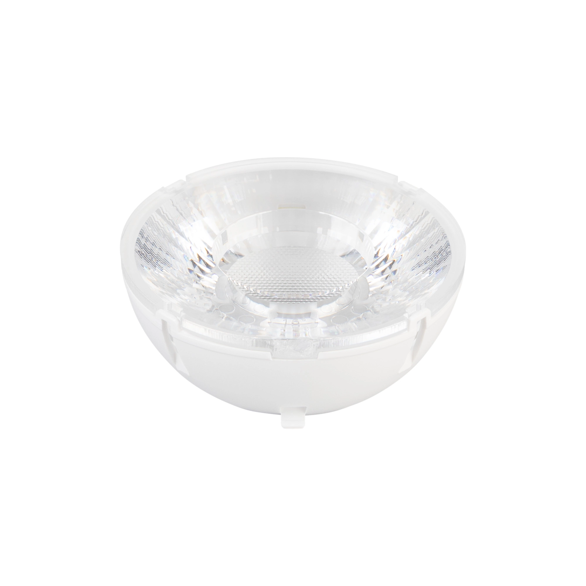 Одиночная линза c холдером белого цвета для светодиодов COB: 1919. Угол обзора: вертикальный 15°, прозрачная. Материал PC. Диаметр 60 мм, высота 22.7 мм.