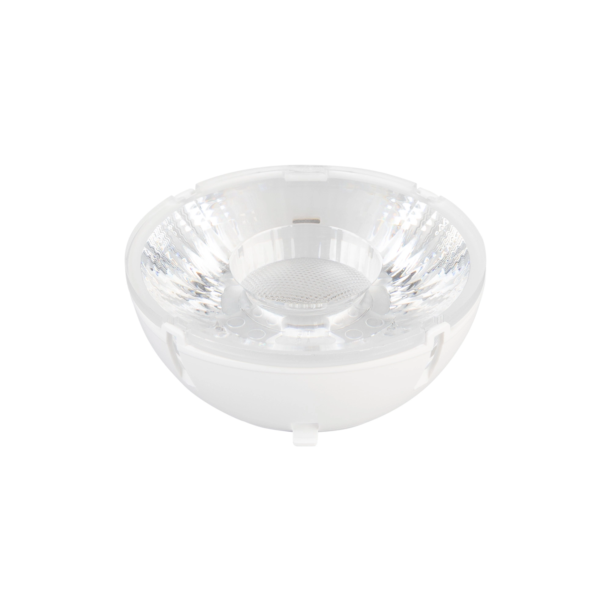Одиночная линза c холдером белого цвета для светодиодов COB: 1919. Угол обзора: вертикальный 36°, прозрачная. Материал PC. Диаметр 60 мм, высота 22.7 мм.