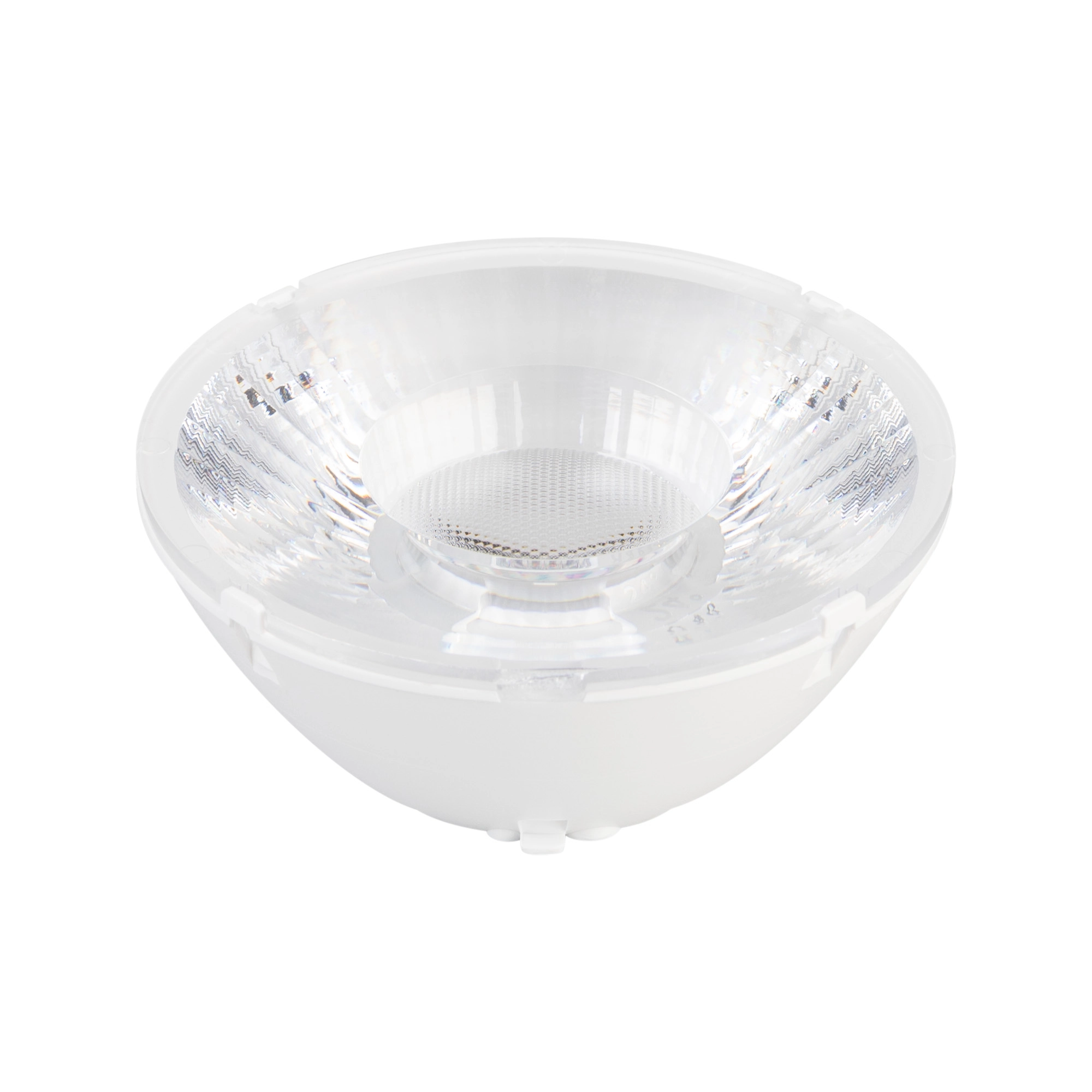 Одиночная линза c холдером белого цвета для светодиодов COB: 1919. Угол обзора: вертикальный 24°, прозрачная. Материал PC. Диаметр 75 мм, высота 22.7 мм.