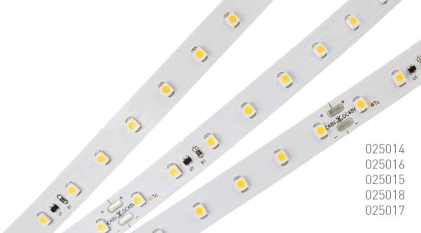 На выбор стабилизированную светодиодную ленту можно приобрести 10-ти, 20-ти, 50-ти метровых катушках. Цветовое свечение представлено 5 вариациями: 2 теплых, 2 холодных и одна нейтральная.