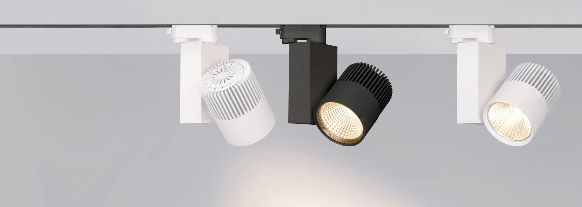 Монтаж светильников выполняется на 3-х фазный трек серии LGD с шиной 4TRA. Использование данной шины позволяет с легкостью менять конфигурацию освещения в целом, легко передвигая осветительный прибор вдоль шины. Минимальный угол луча света – 25°.