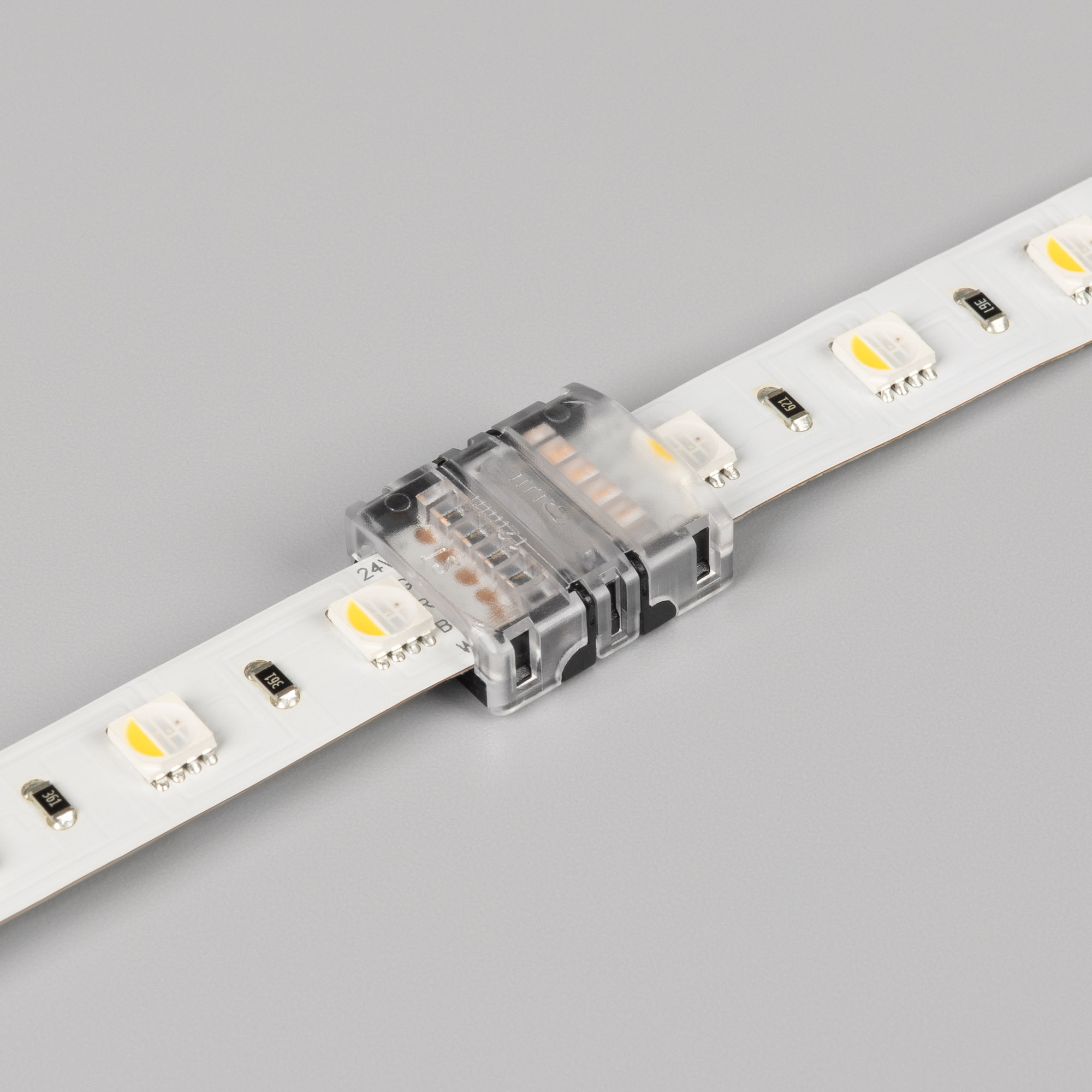 Одиночный коннектор для соединения 2-х отрезков открытых светодиодных лент RGBW шириной 12 мм. Материал - прозрачный пластик. Обеспечивает соединение без видимых разрывов. Максимальный допустимый ток 3 А, напряжение 3-24 В, степень защиты IP33. Цена за 1 шт.