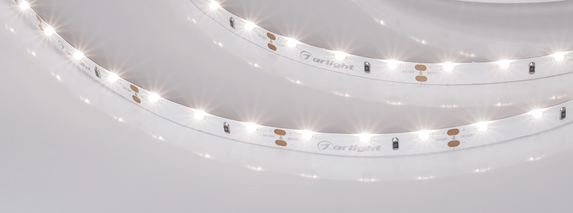 Мощность – один из критериев оценки яркости светодиодной ленты. Традиционно считают, что от мощности ленты напрямую зависит количество света. Ленты Arlight белого цвета выдают от 50 до 155 лм на 1 Вт мощности. Условно считается, что 7 Вт ленты заменяют 1