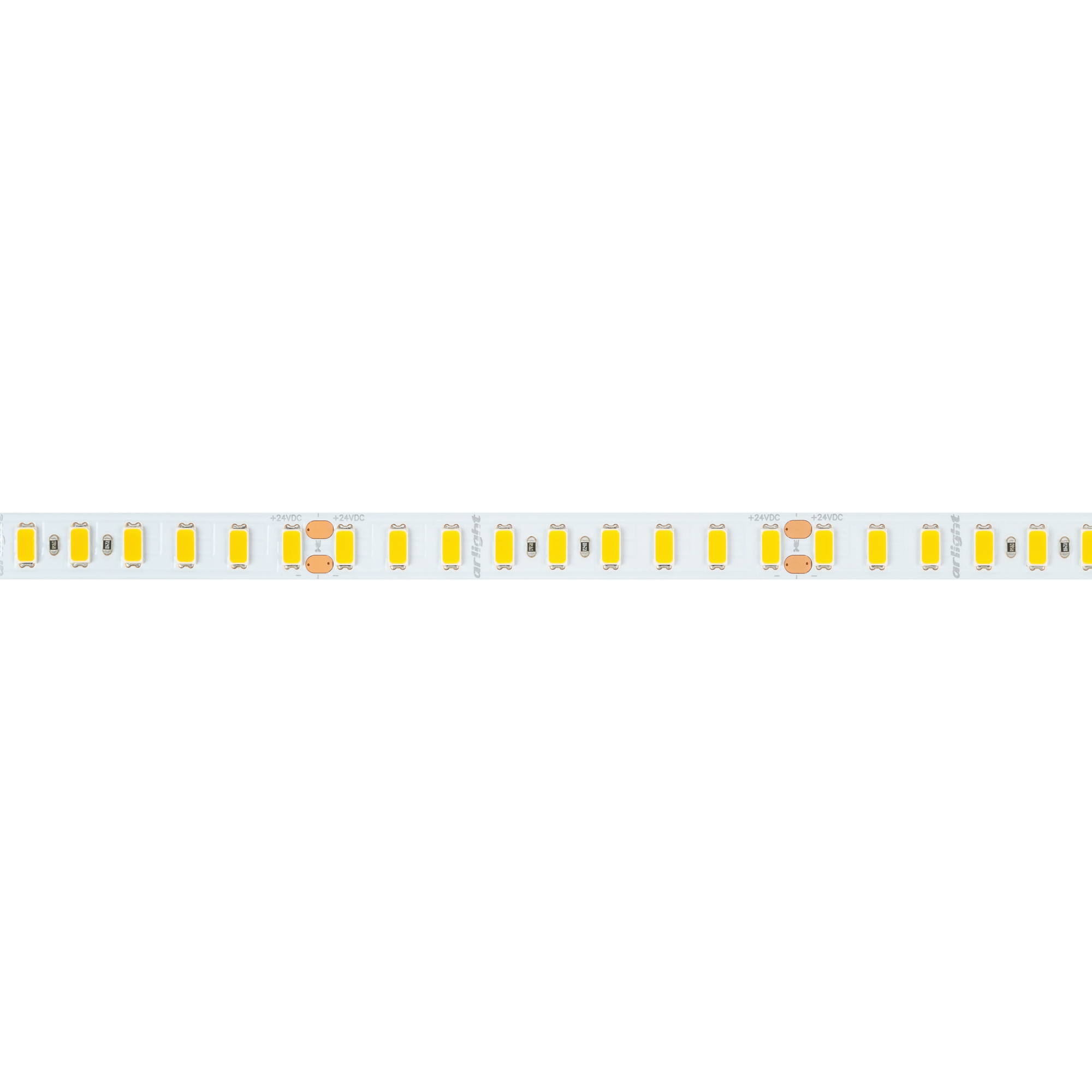 Светодиодная высокоэффективная лента ULTRA серии C126. Светодиоды SMD 5630, 126 шт/м, белая плата шириной 10 мм, скотч 3M. Цвет ТЕПЛЫЙ 2700K, высокая световая эффективность 200 лм/Вт, индекс цветопередачи CRI>80, угол 120°. Питание 24 В, мощность 14.4 Вт/м (72 Вт на 5 м). Размеры 5000x10x1.4 мм. Мин. отрезок 71.4 мм, 9 светодиодов. Цена за 1 м. Рекомендуется установка на профиль.