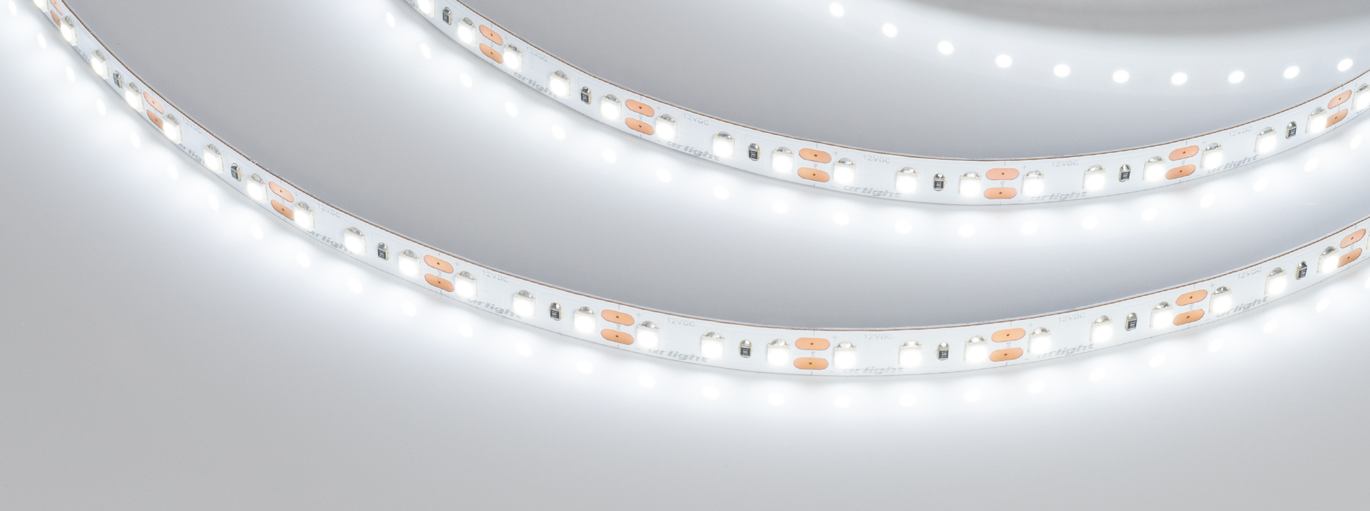 Мощность – один из критериев оценки яркости светодиодной ленты. Традиционно считают, что от мощности ленты напрямую зависит количество света. Ленты Arlight белого цвета выдают от 50 до 155 лм на 1 Вт мощности. Условно считается, что 7 Вт ленты заменяют 1
