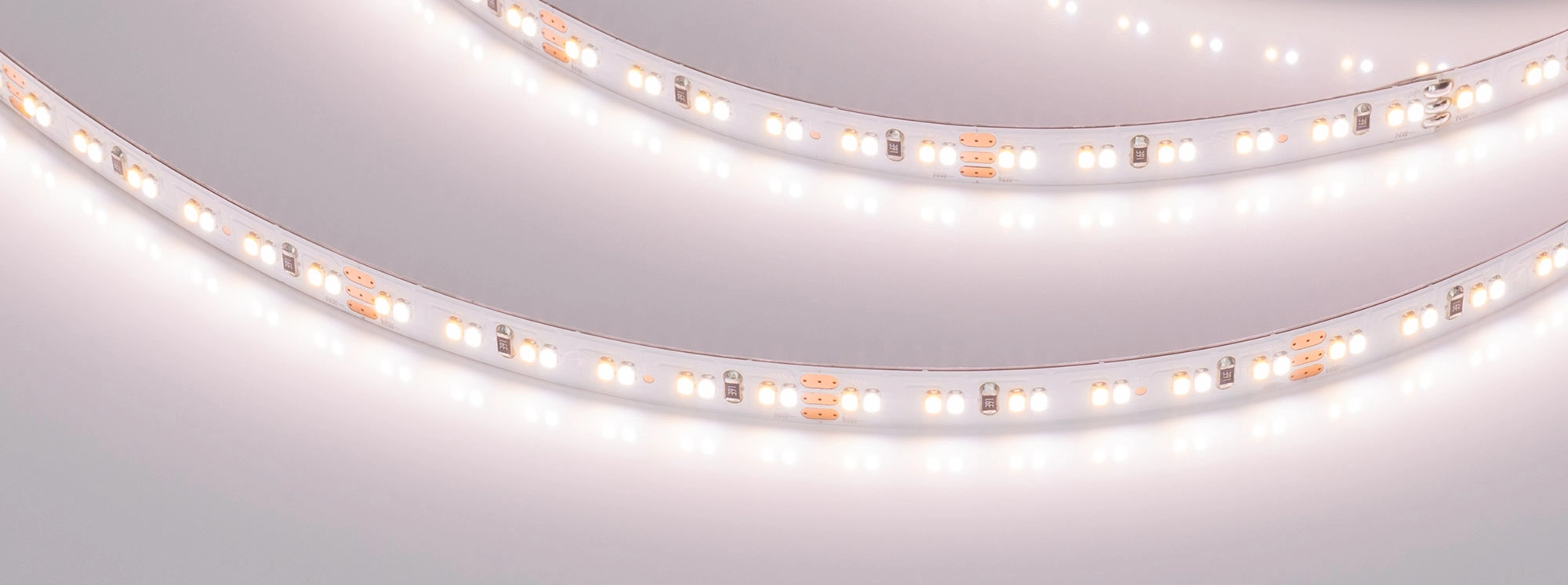 Мощность – один из критериев оценки яркости светодиодной ленты. Традиционно считают, что от мощности ленты напрямую зависит количество света. Ленты Arlight белого цвета выдают от 50 до 155 лм на 1 Вт мощности. Условно считается, что 7 Вт ленты заменяют 1