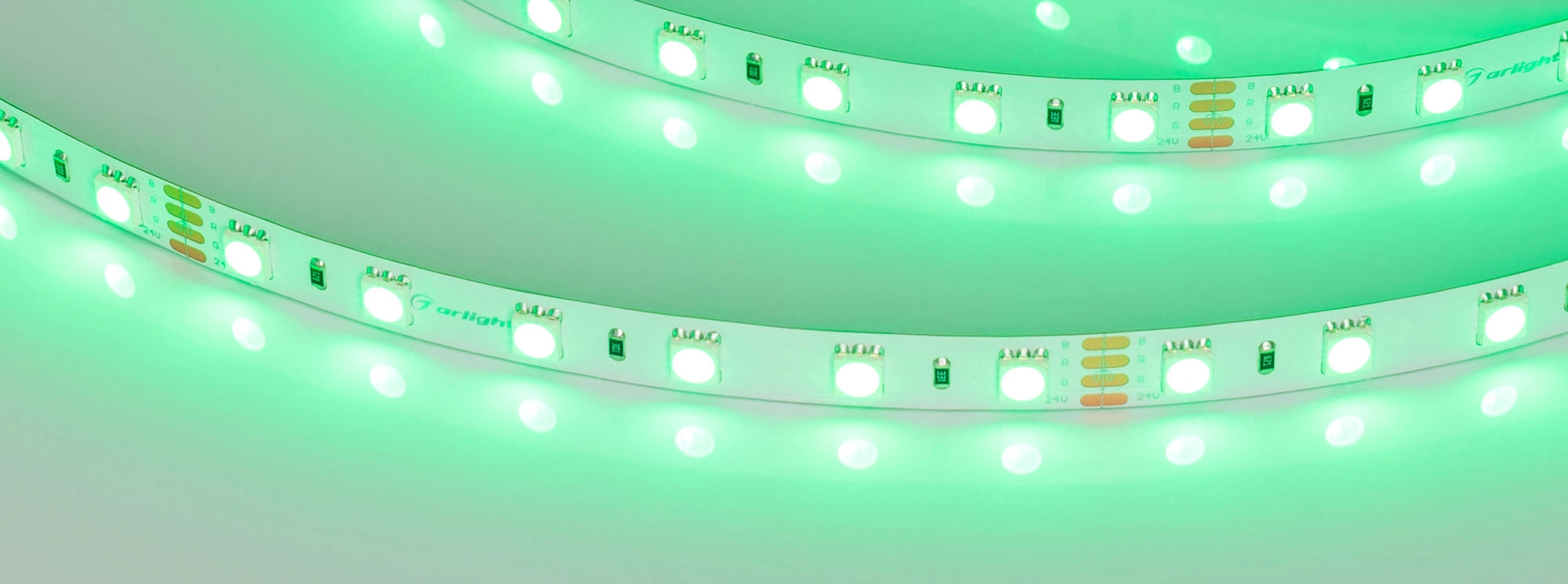 Мультицветная светодиодная лента RT серии B60 на монтажной бобине 50 м. Светодиоды SMD 5060, 60 шт/м, белая плата шириной 10 мм, скотч 3M. Цвет RGB, угол 120°. Питание 24 В, мощность 14.4 Вт/м (720 Вт на 50 м). Размеры 50000x10x2.2 мм. Мин. отрезок 100 мм, 6 светодиодов. Цена за 1 м. Макс. длина подключения 5 м. Разрезать перед подключением.