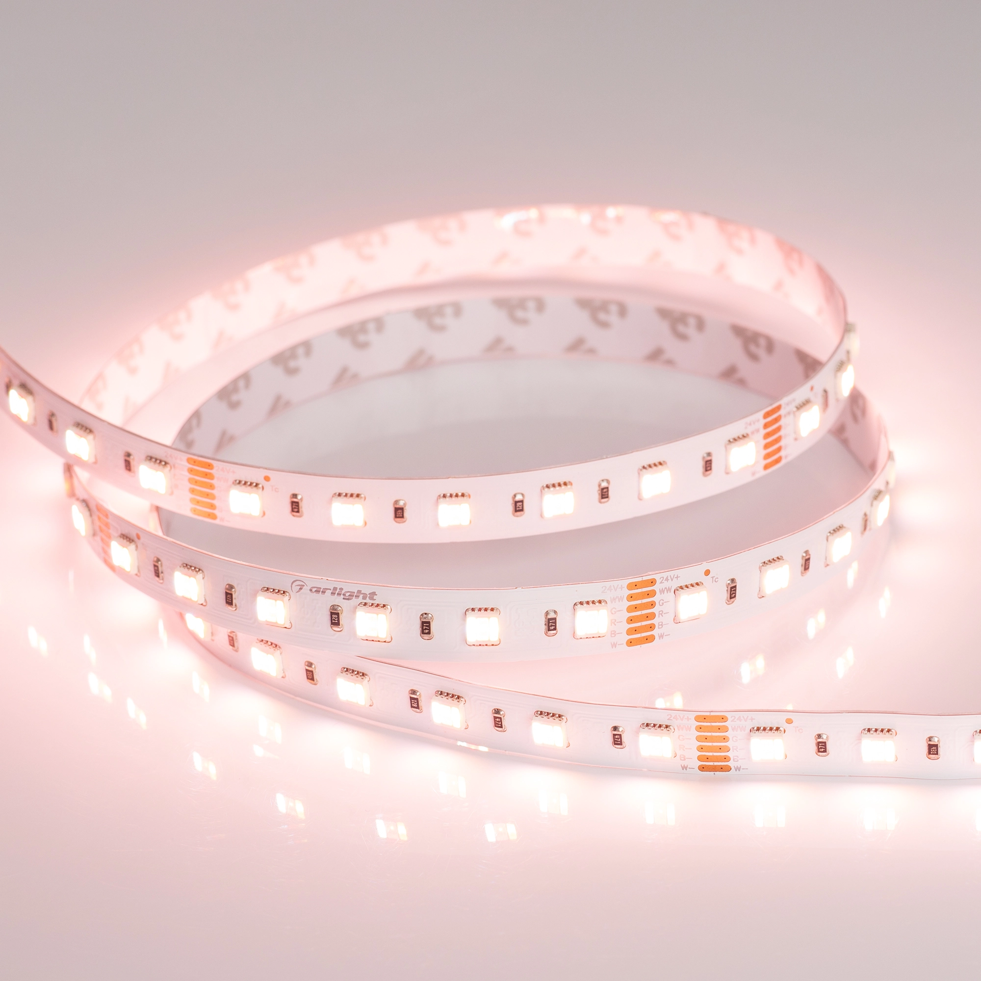 Светодиодная лента RT серии B60. Светодиоды 5060 5-in-1, 60 шт/м, белая плата шириной 12 мм, скотч 3M. Цвет RGB + MIX ТЕПЛЫЙ 2400K +MIX БЕЛЫЙ 6500K , индекс цветопередачи CRI>85, угол 120°. Питание 24 В, мощность 20 Вт/м (100 Вт на 5 м). Размеры 5000x12x2.1 мм. Мин. отрезок 100 мм, 6 светодиодов. Цена за 1 м.