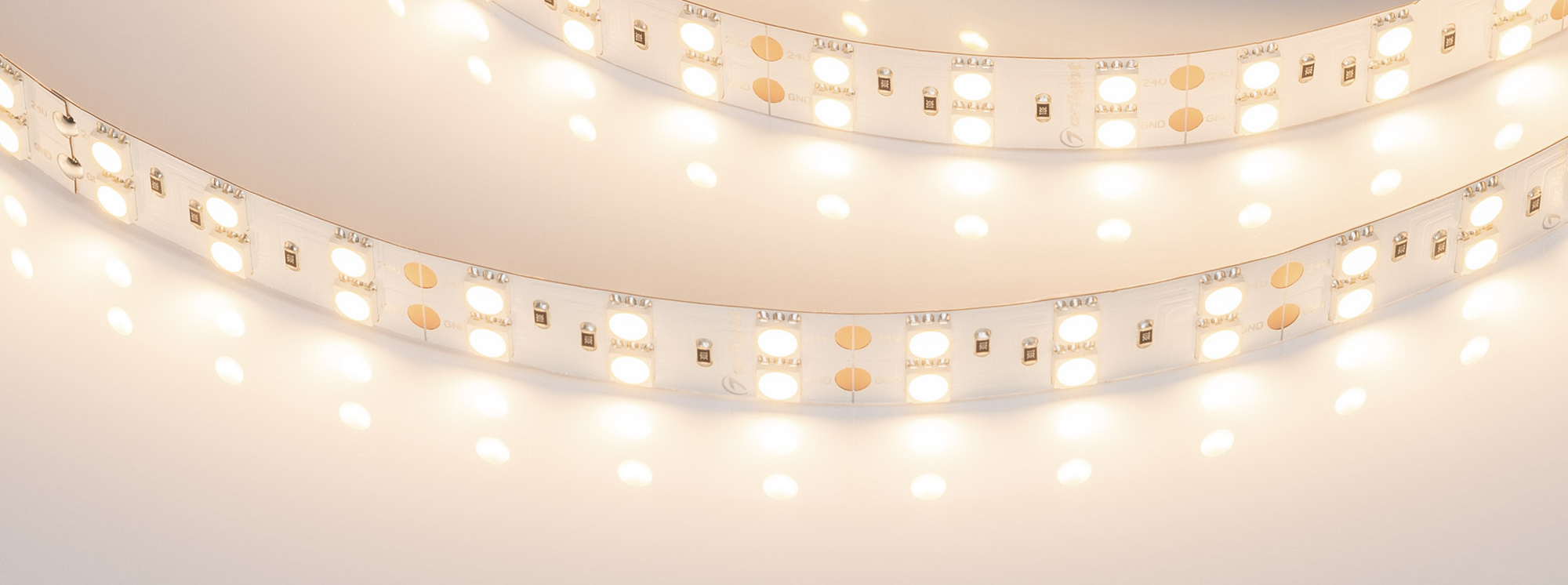 Мощность – один из критериев оценки яркости светодиодной ленты. Традиционно считают, что от мощности ленты напрямую зависит количество света. Ленты Arlight белого цвета выдают от 50 до 155 лм на 1 Вт мощности. Условно считается, что 7 Вт ленты заменяют 1