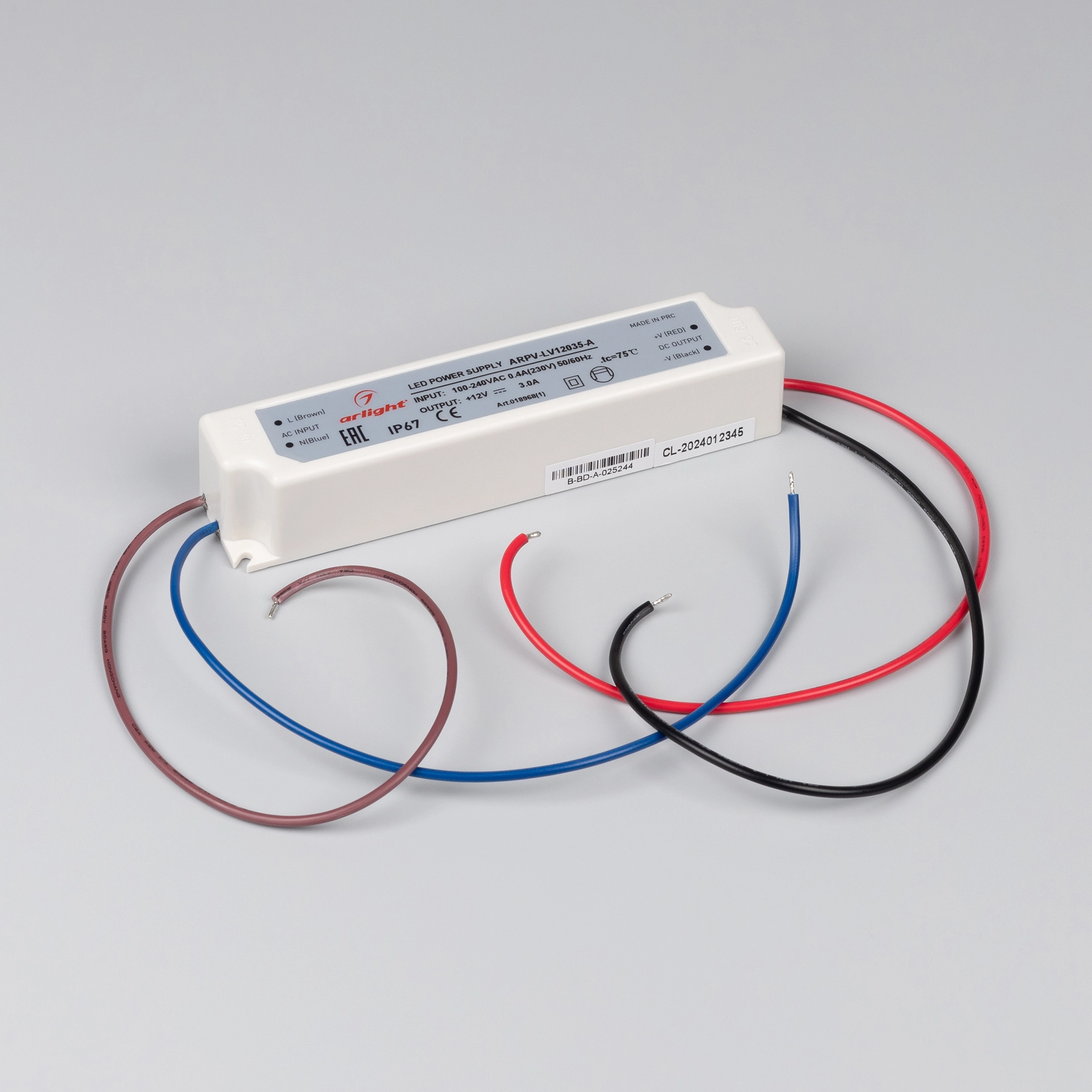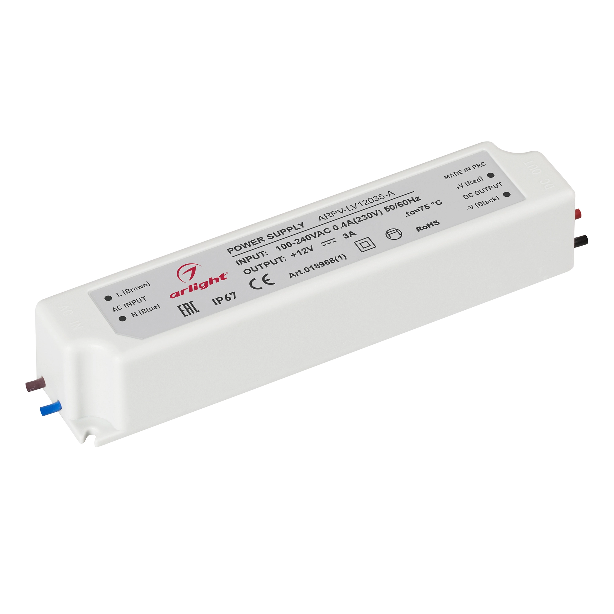Источник напряжения с гальванической развязкой для светодиодных изделий. Входное напряжение 100 - 240 VAC. Выходные параметры: 12 В, 3 А, 36 Вт. Встроенный PFC >0,5. Герметичный пластиковый корпус IP 67. Рабочая температура -30…+70C⁰. Габаритные размеры длина 148 мм, ширина 32 мм, высота 29 мм. Гарантийный срок 3 года.