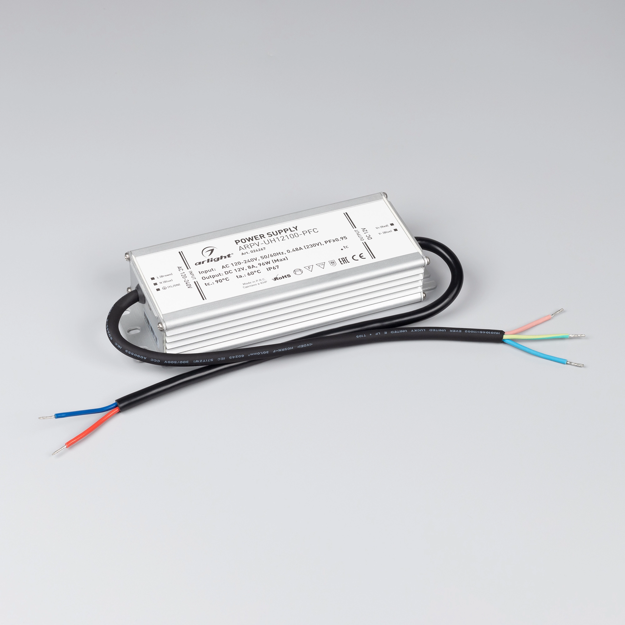 Источник напряжения с гальванической развязкой для светодиодных изделий. Входное напряжение 120-240 VAC. Выходные параметры: 12 В, 8 А, 96 Вт. Встроенный PFC >0,95. Герметичный алюминиевый корпус IP 67. Рабочая температура -40…+70C⁰. Габаритные размеры длина 188 мм, ширина 67.5 мм, высота 33.5 мм. Гарантийный срок 7 лет.