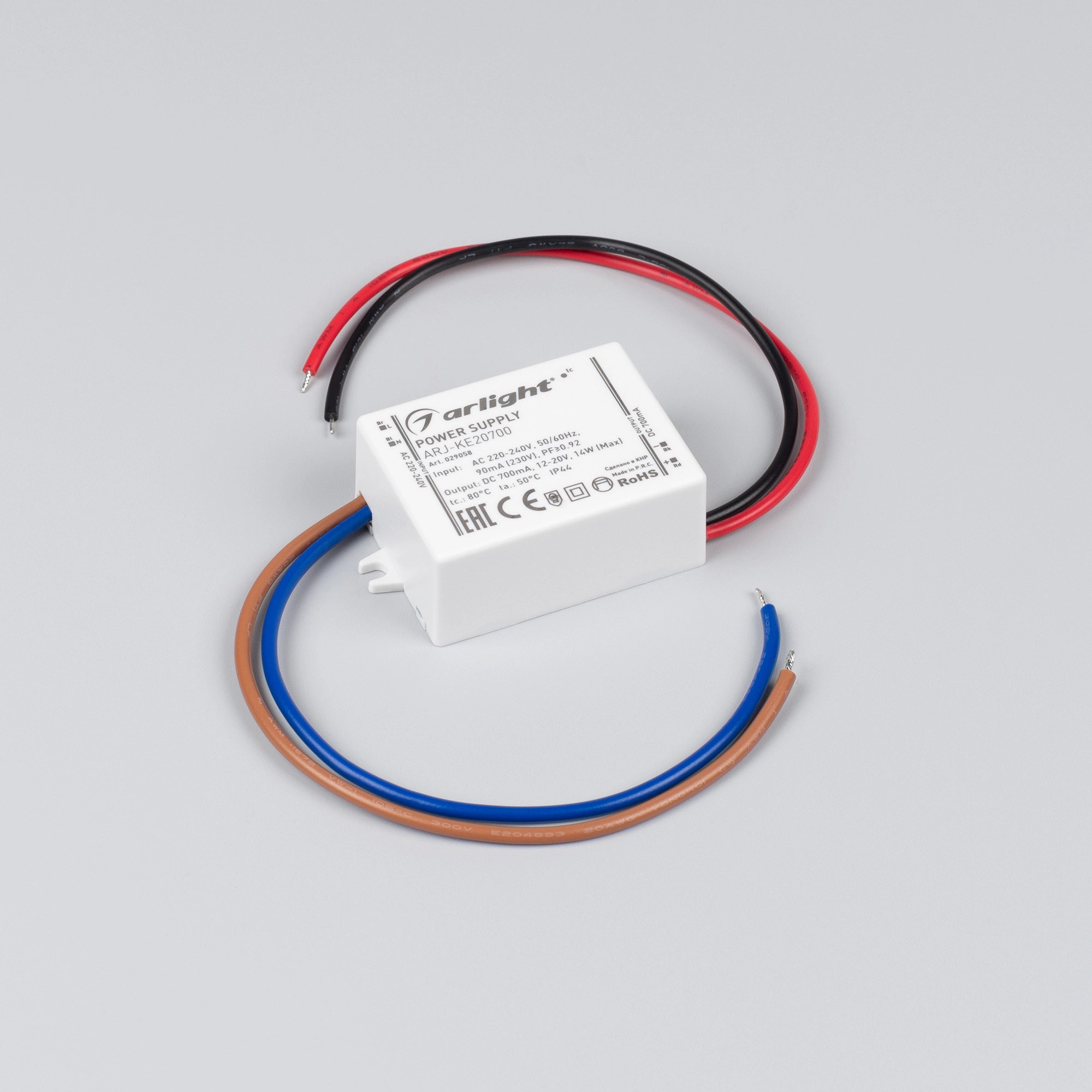 Источник тока с гальванической развязкой для светильников и мощных светодиодов. Входное напряжение 220-240 VAC. Выходные параметры: 12-20 В, 700 mА, 14 Вт. Встроенный PFC >0.92. Негерметичный пластиковый корпус IP 44. Габаритные размеры длина 58 мм, ширина 36 мм, высота 20 мм. Гарантийный срок 5 лет.