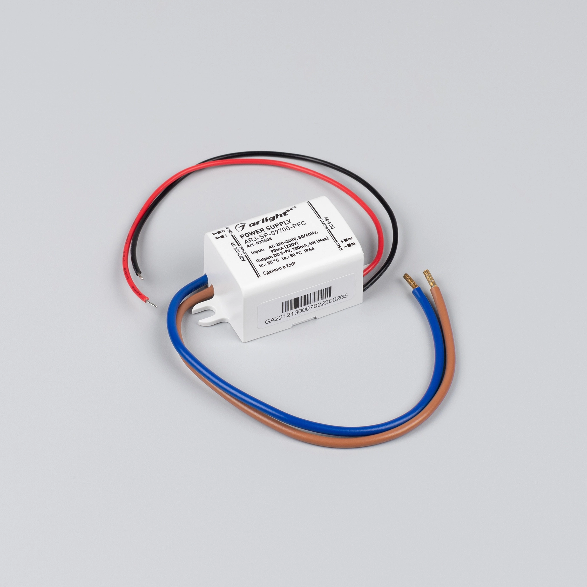 Источник тока с гальванической развязкой для светильников и мощных светодиодов. Входное напряжение 220-240 VAC. Выходные параметры: 5-9 В, 700 mА, 6 Вт. Встроенный PFC >0.8. Негерметичный пластиковый корпус IP 44. Габаритные размеры длина 55 мм, ширина 27 мм, высота 21 мм. Гарантийный срок 5 лет.