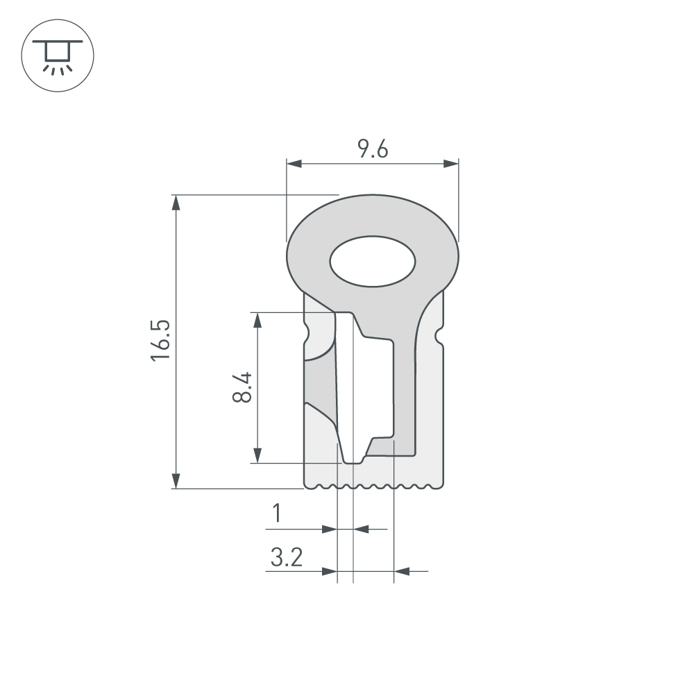 Цельнолитой силиконовый гибкий профиль, белый матовый. Габаритные размеры 20000×9,6×16,5 мм. Горизонтальный изгиб SIDE, минимальный радиус изгиба 30 мм. Для установки во влажных помещениях необходима герметизация при помощи двухкомпонентного эпоксидного герметика. Класс пылевлагозащиты – IP65 (при соблюдении технологии герметизации). Для лент шириной 8 мм, высотой до 3 мм и мощностью до 10 Вт/м. Поставляется в катушках по 20 м. Цена за 1 м.
