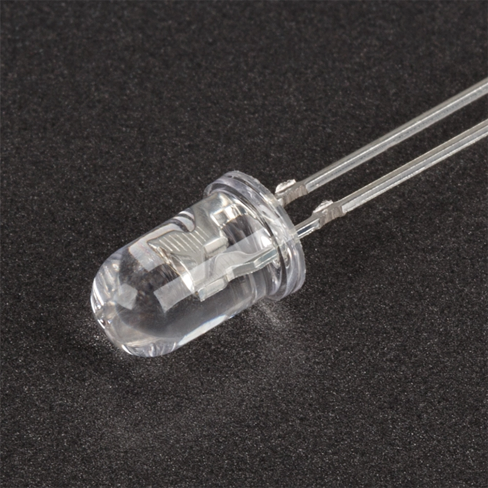 Поставка под заказ от 5000 шт. Выводной круглый светодиод, d=5 мм, прозрачная линза. Цвет свечения синий (460-470 нм). Угол излучения 30-40°. Сила света Iv=1800-2200 мкд при If=20 мА. VF=2.9-3.5 В. Рекомендуемый постоянный рабочий ток <16-17 мА.