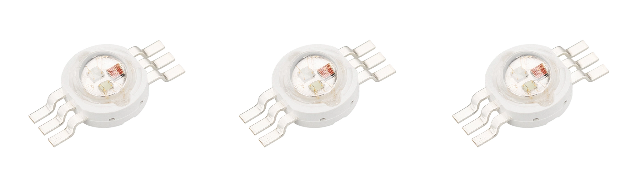Поставка под заказ от 200 шт. Мощный светодиод типа COB, размер 18.4×20 мм. Чипы EPILEDS 32-35 mil. Цвет свечения RGB: красный (620-630 нм), зеленый (520-530 нм), синий (460-470 нм). Угол излучения 120°. Световой поток 160-180лм (красный), 320-360 лм (зеленый), 80-120 лм (синий) при If=350 мА, P=15 Вт. VF=10-12 В (красный), VF= 15-17 В (зеленый/синий). Управляется RGB контроллером тока, или любым RGB-контроллером через конвертор сигнала напряжения в ток.