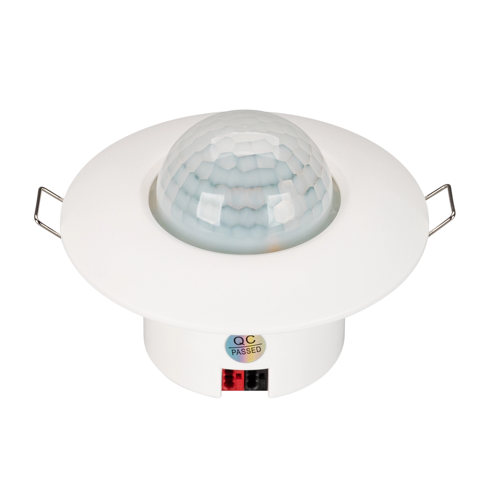 ИК датчик присутствия KNX. Встроенные датчики освещенности и температуры. Питание от шины KNX DC 21-30V. Размер 65хØ93 мм. Размер утапливаемой части 38хØ52 мм.