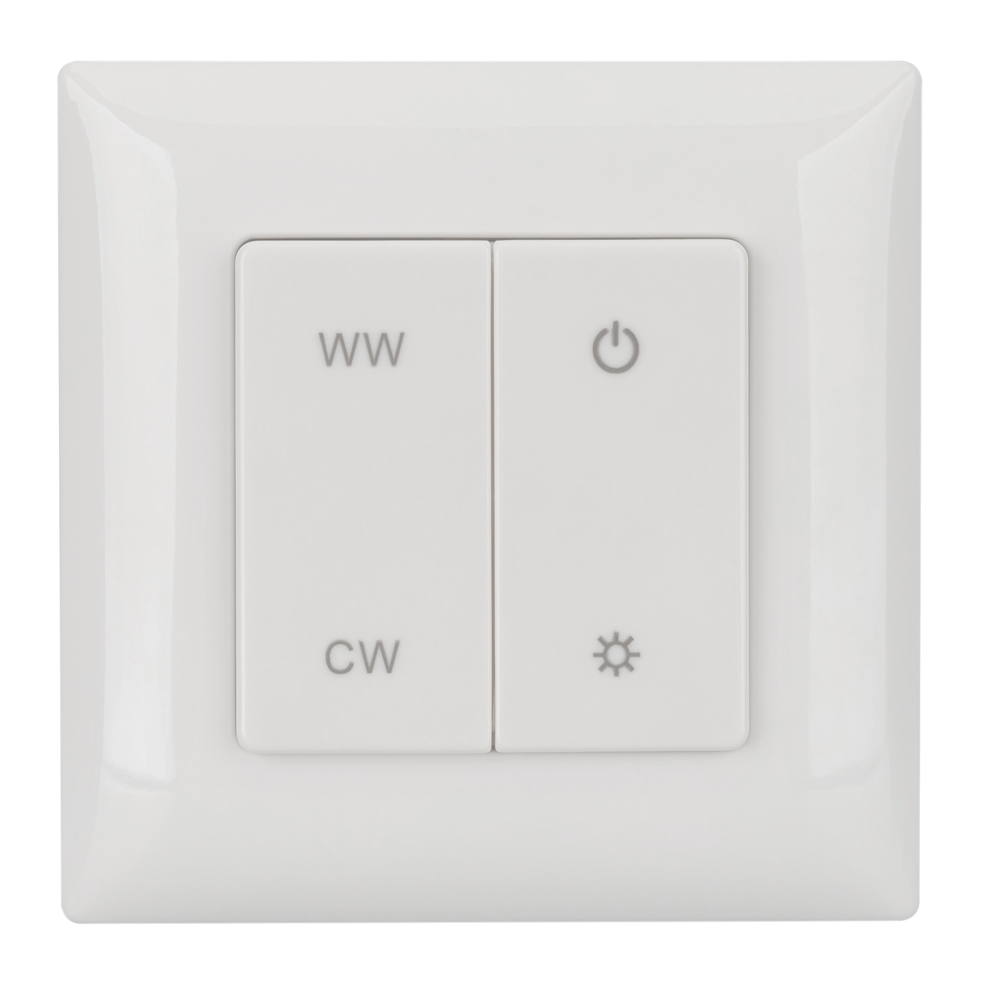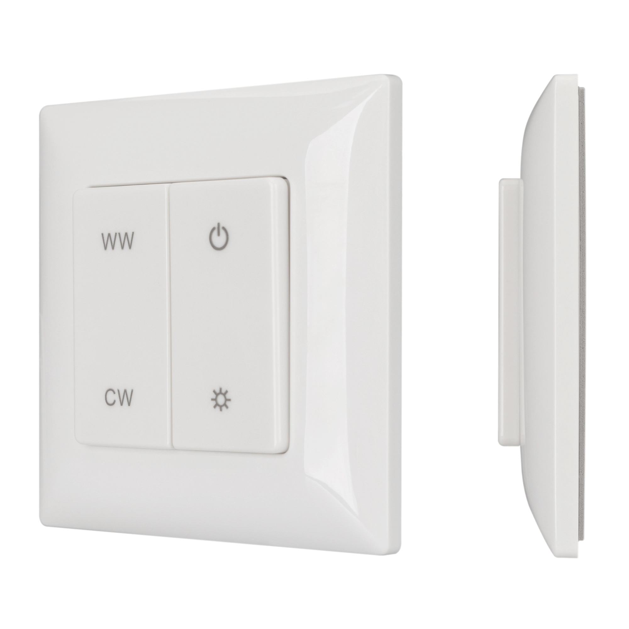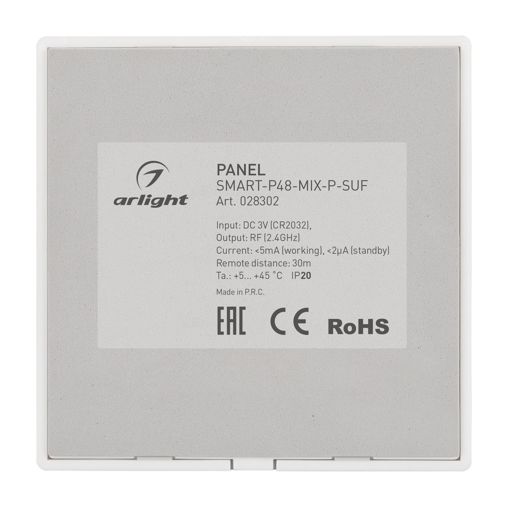 Накладная кнопочная панель 2.4 ГГц, цвет белый. Материал - пластик. Для управления мультибелыми (MIX) источниками света (ШИМ), 1 зона управления. Питание/рабочее напряжение 3VDC от батарейки CR2032. Габариты 86х86х14 мм. Совместима с контроллерами SMART.