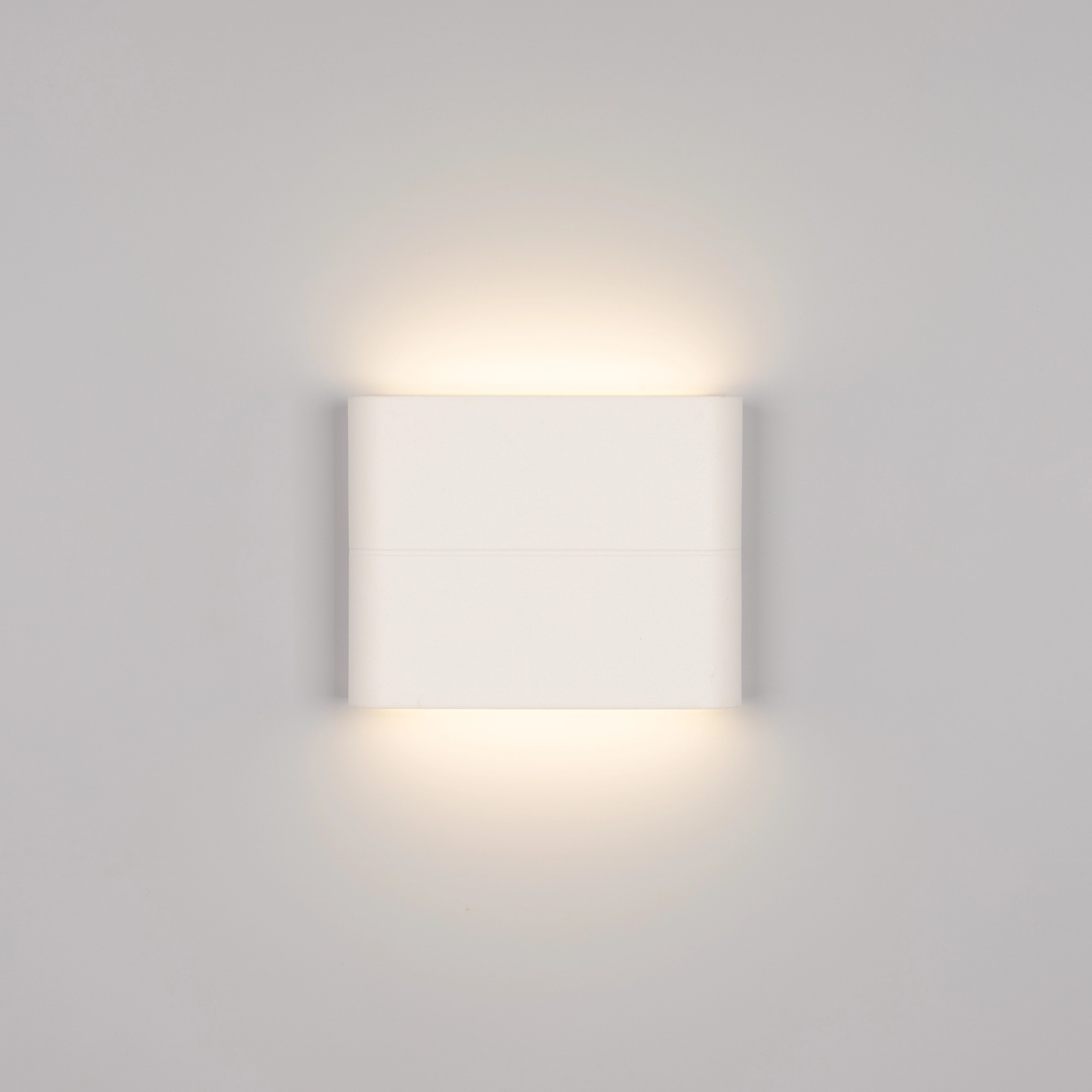 Накладной настенный светильник 2x3Вт, белый алюминиевый корпус, матовый рассеиватель из поликарбоната. Цвет ДНЕВНОЙ БЕЛЫЙ 4000K, св.поток 450лм, CRI(Ra)>80, угол 120°, свет вверх-вниз. Размер 110x90x28мм. IP54. Питание AC220-240V, 6Вт, встроенный драйвер.