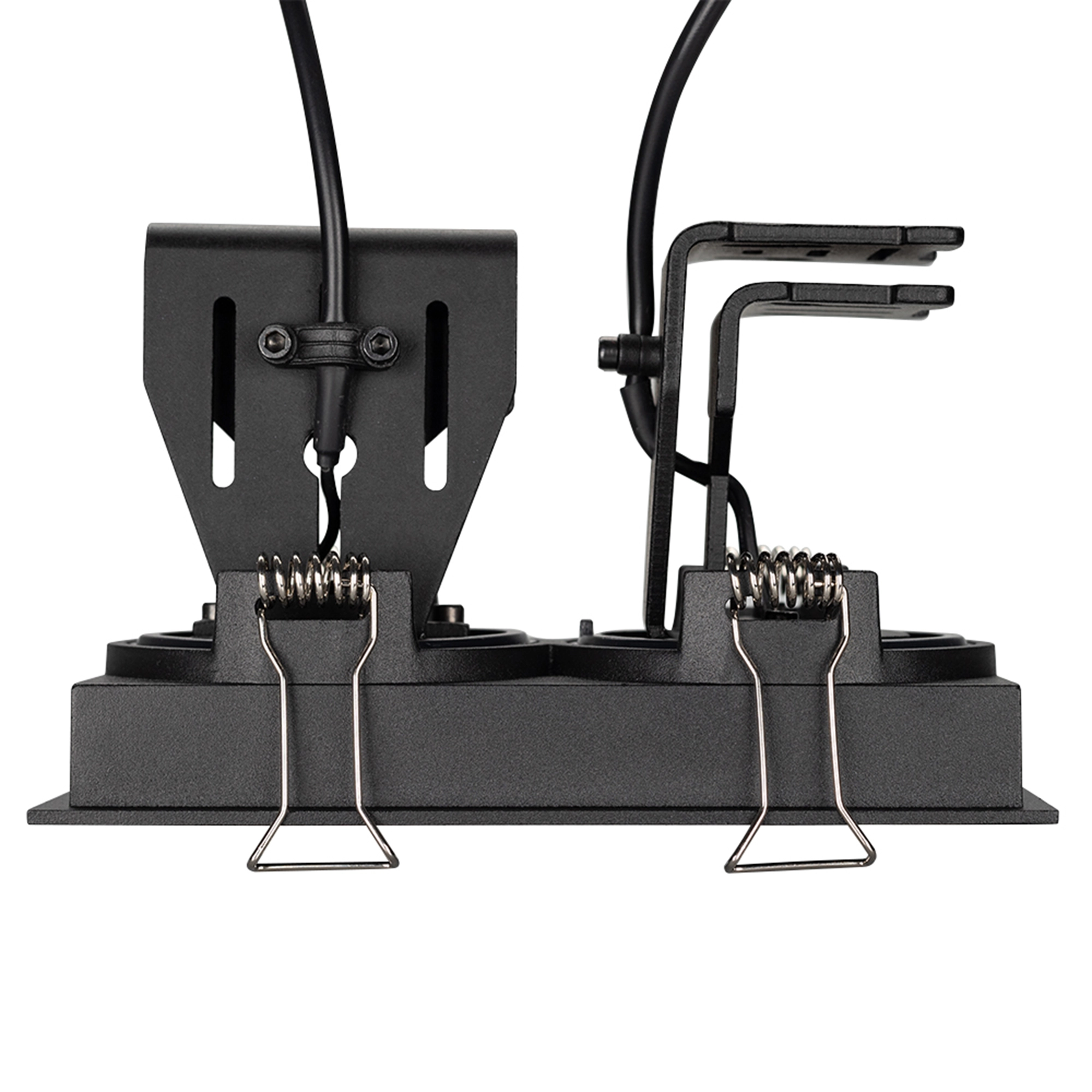 Встраиваемый поворотный светильник для потолка. Мощность 2x9W, цвет ДНЕВНОЙ 4000K, св.поток 1260лм, угол 45°, RA>90. Корпус прямоугольный черный. Питание AC180-240V. Размеры LxWxH 148x80x90мм. Установка в отверстие 140x70мм. Драйвер в комплекте 2 шт (30-45V, 220mA).