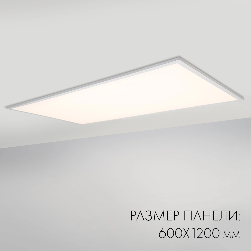 Светодиодная панель с торцевой засветкой. Мощность 48 Вт, св. поток 5100 лм, 107 лм/Вт, дневной 4000 K, CRI>80, угол 120°, напряжение питания 230 В. Белый квадратный корпус из алюминия, экран PS, LGP PMMA, степень защиты IP40. Размер (Д×Ш×В) 1195×595×11,2 мм. Монтаж встраиваемый, установочное отверстие длина 1175 мм, ширина 575 мм. Драйвер 28.5-48 В, 1050 мА, пульсация <5%.