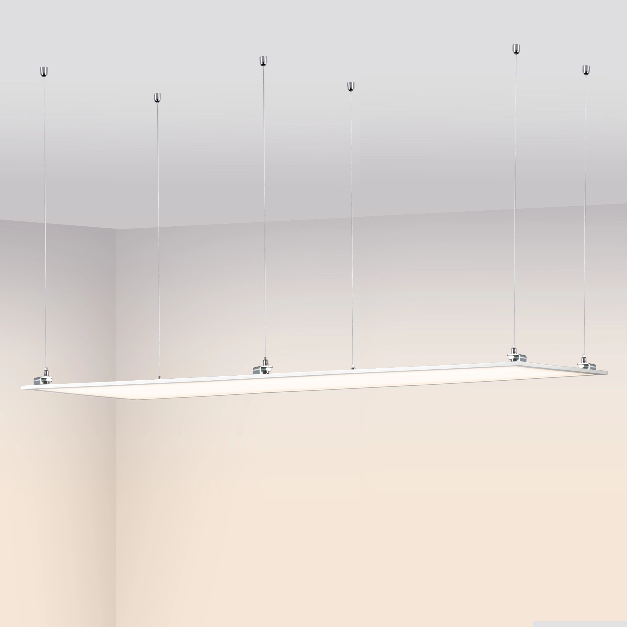Светодиодная панель с торцевой заcветкой. Мощность 40 Вт, св. поток 3600 лм, 90 лм/Вт, теплый 3000 K, CRI>80, угол 120°, напряжение питания 230 В. Белый квадратный корпус из алюминия, экран PS, LGP PMMA, степень защиты IP40. Размер (Д×Ш×В) 1195×295×10,4 мм. Монтаж встраиваемый, установочное отверстие длина 1175 мм, ширина 275 мм.. Драйвер 27-38 В, 1050 мА, пульсация <5%.